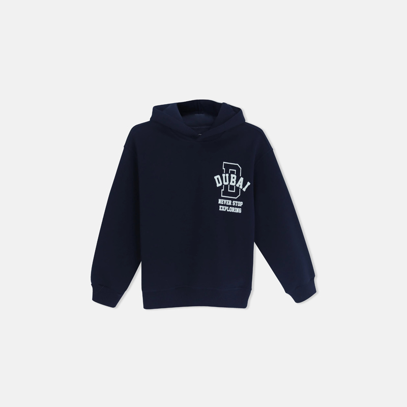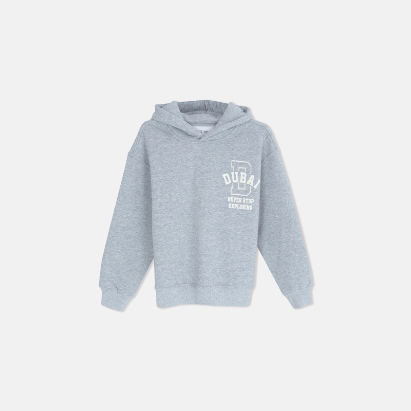 هودي ولادي بطبعة دبي: انطلق براحة يتميز هذا الكنزة بغطاء الرأس بطبعة دبي وقماش ناعم من القطن والبوليستر (53% قطن). مثالي للارتداء اليومي. متوفر بـ الكحلي و الرمادي. تسوق سويت شيرتات ولادية أنيقة