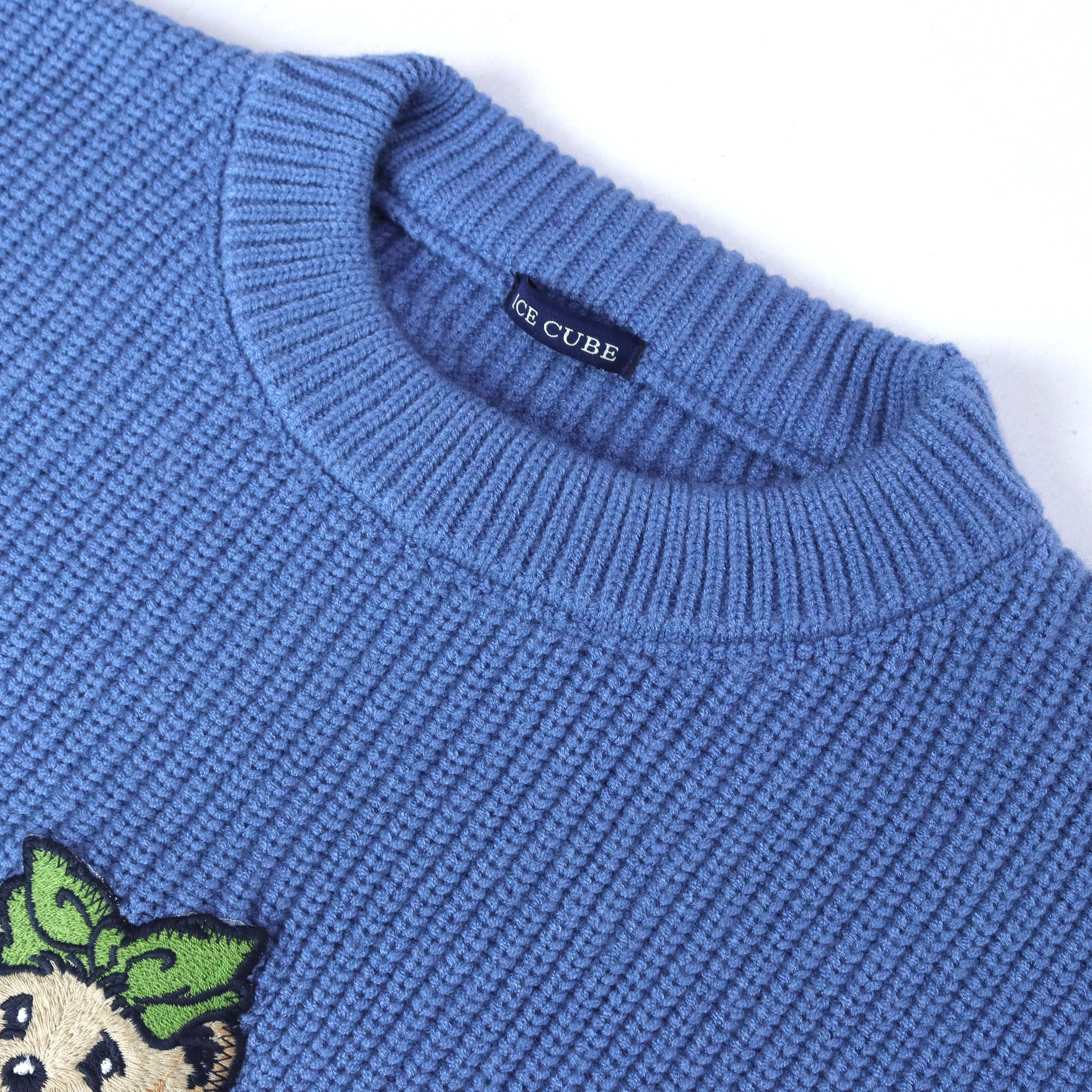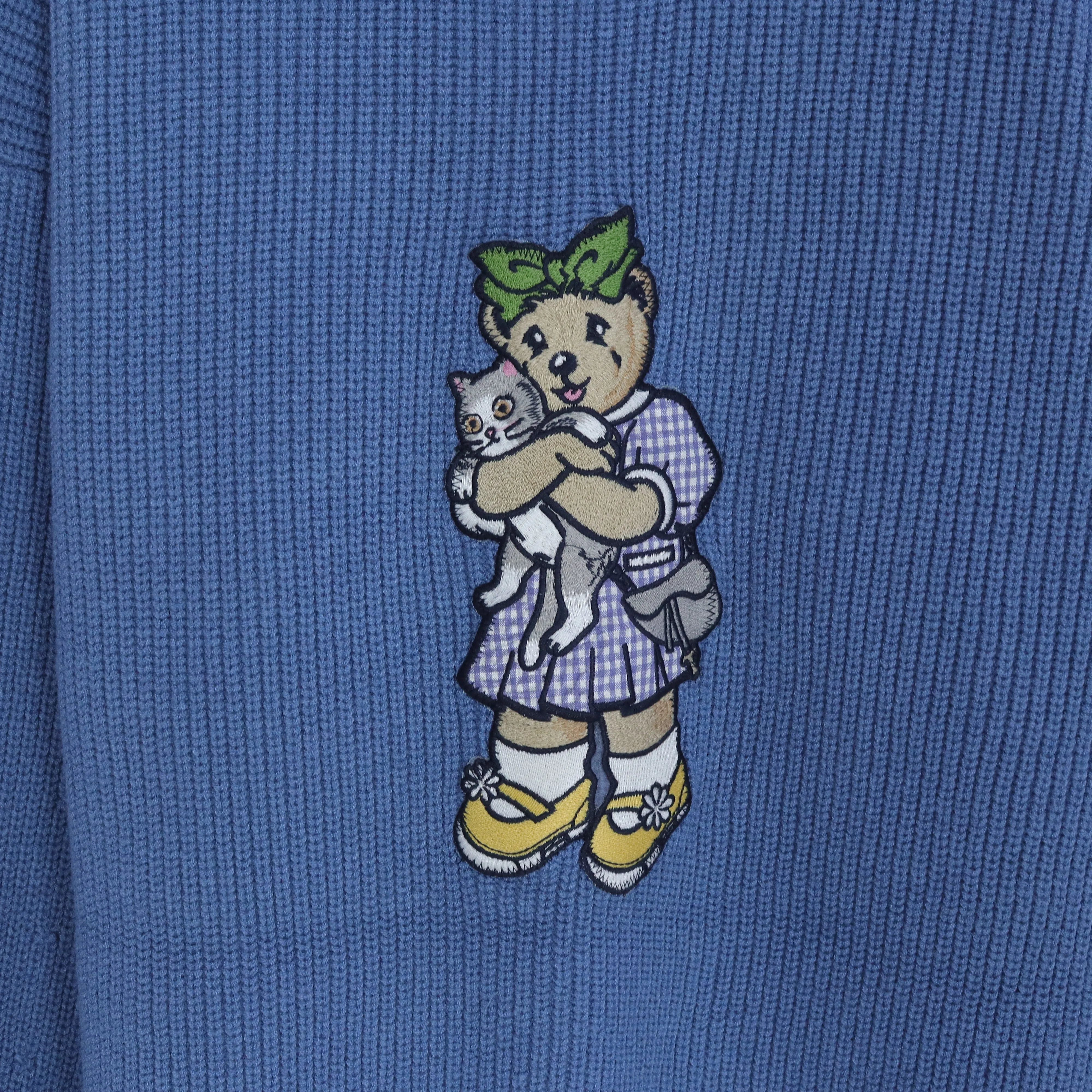 Women's long knitted sweater with a bear print