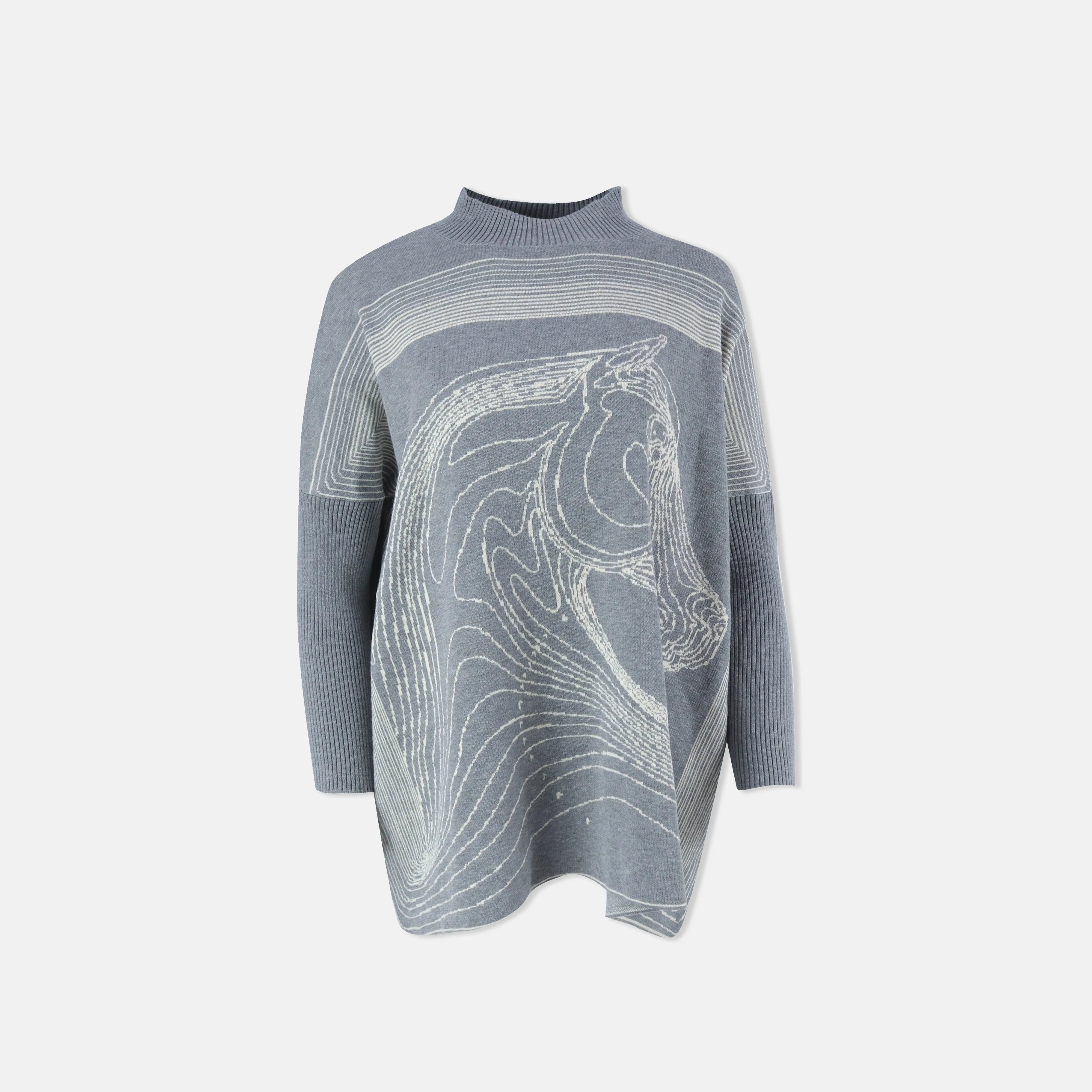 أطلقي لعلامة فارقة مع سويتر المرأة المحبوك المقاس الكبير بنمط الحصان. يتميز هذا البلوز الفريد برسوم فرسية بارزة تغطيه بأناقة لافتة.