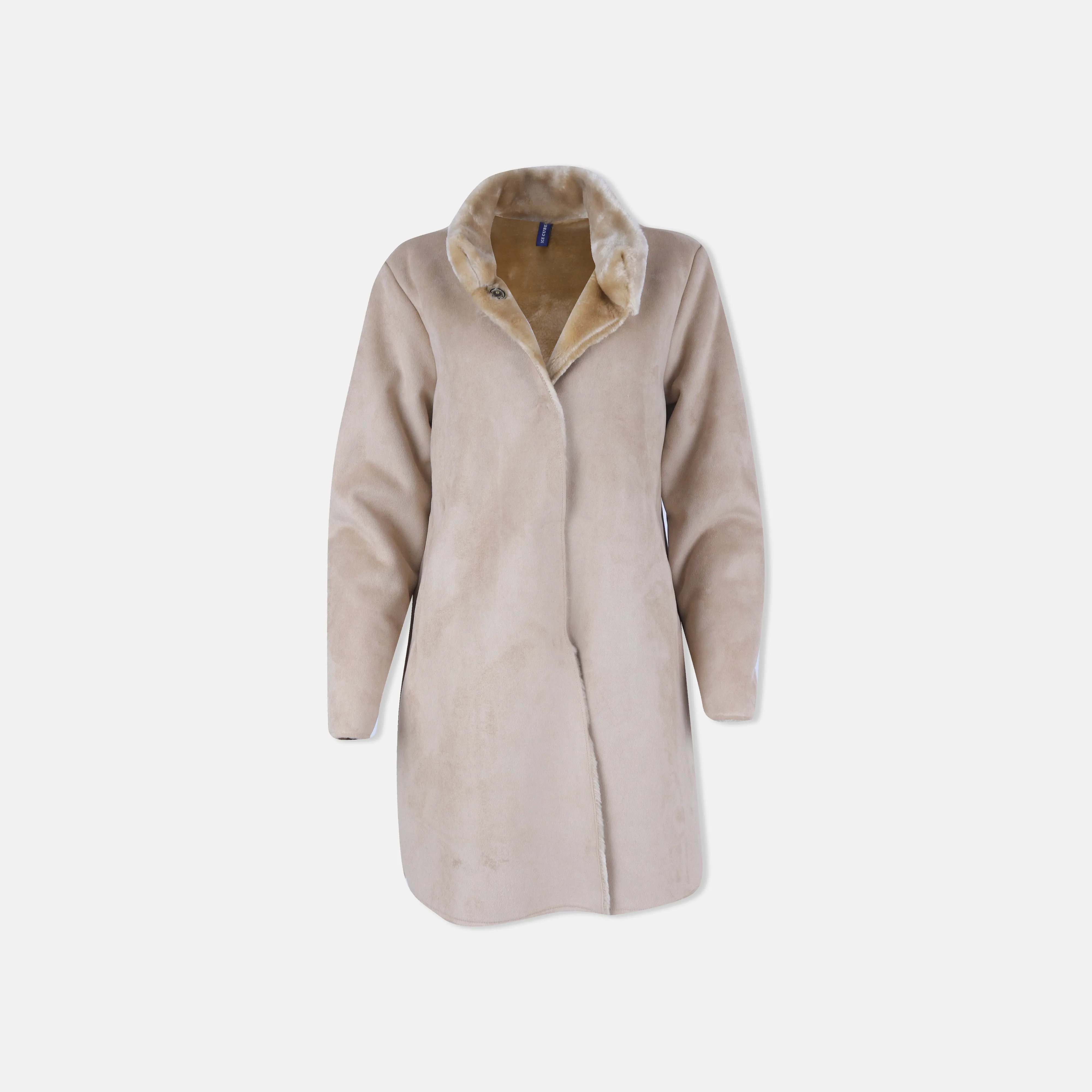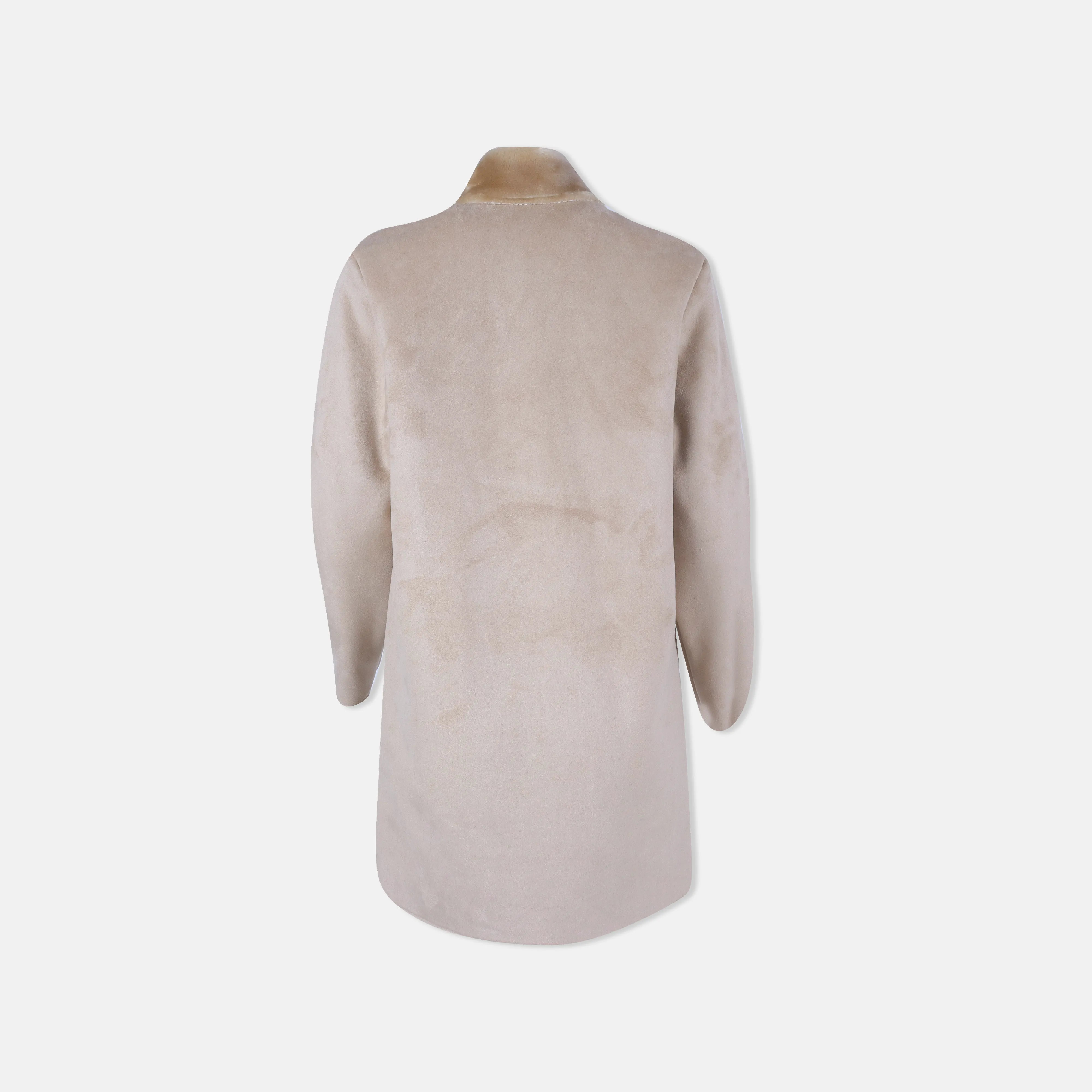 Mid-Length Faux Suede Coat with Sherpa Lining