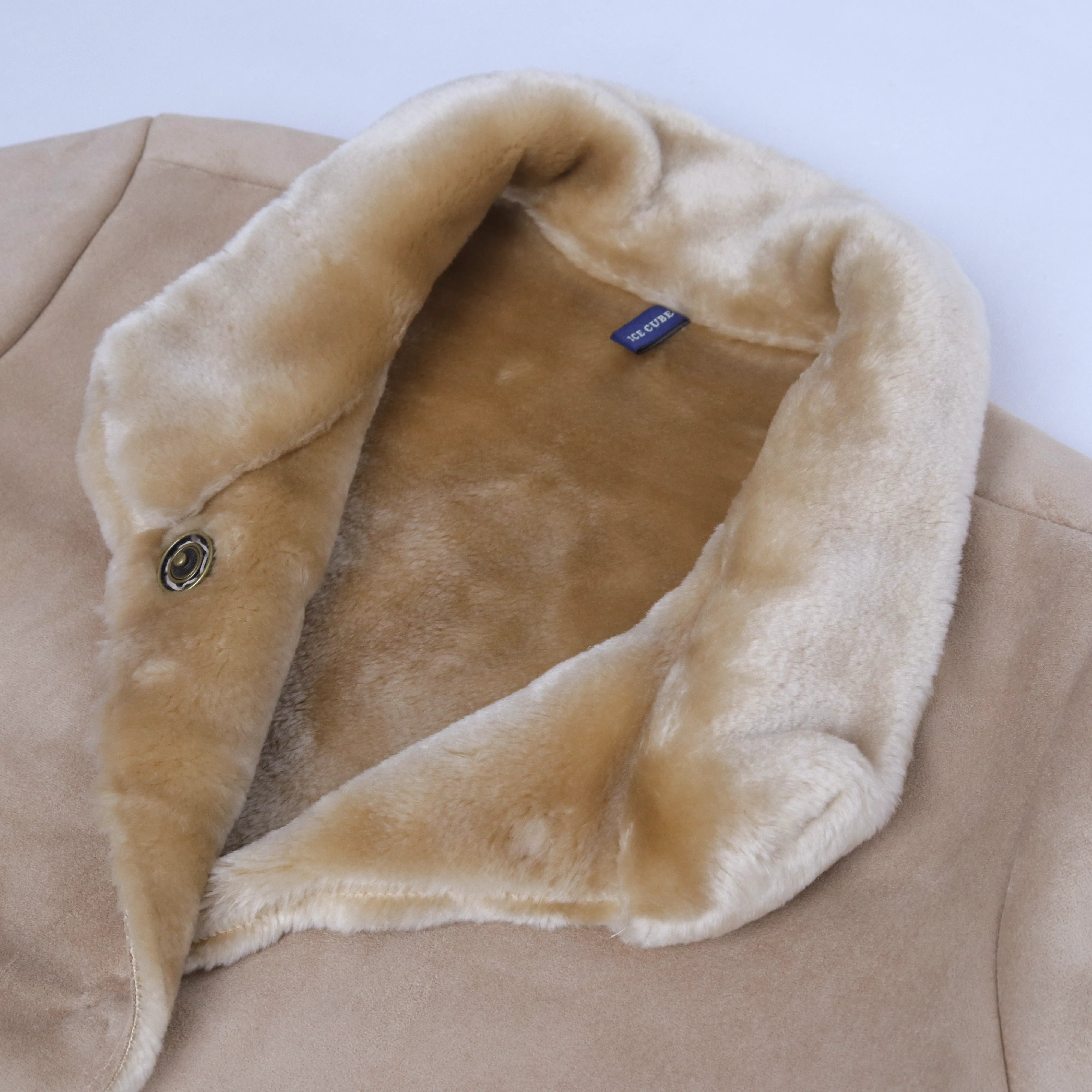 اكتشف معطفنا الطويل من الجلد الصناعي باللون البيج مع بطانة شيربا الفاخرة. مصنوع من خليط متين من البوليستر والنايلون