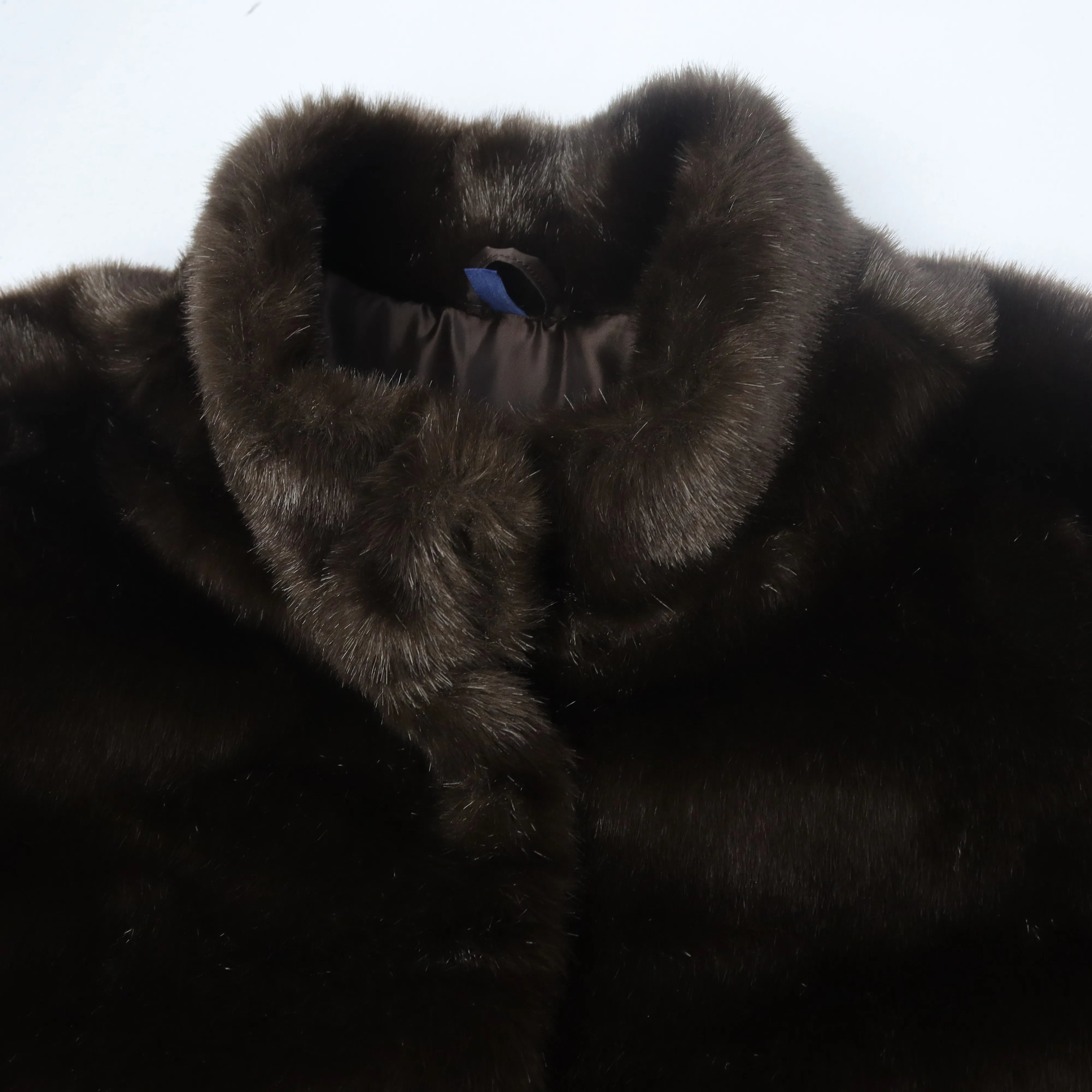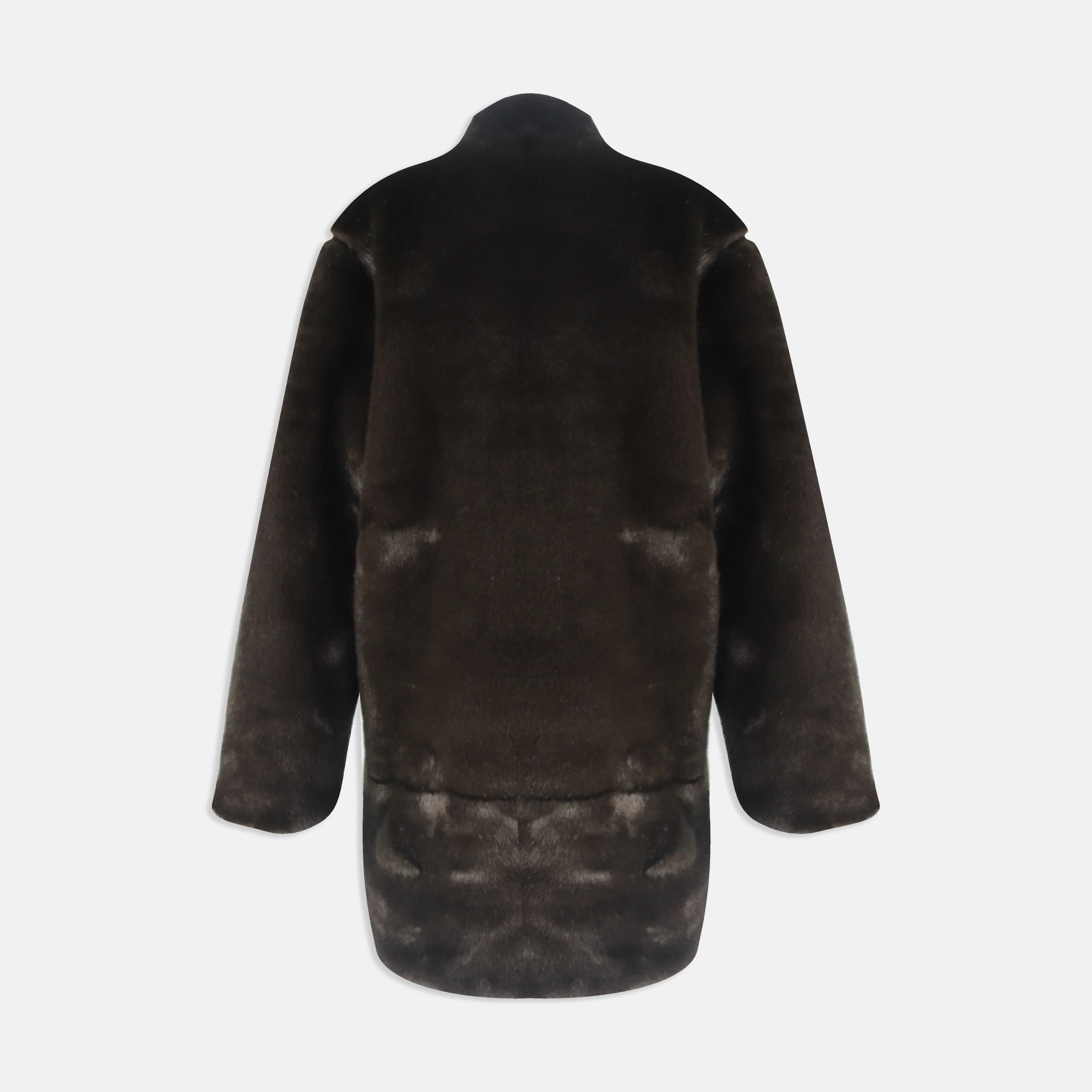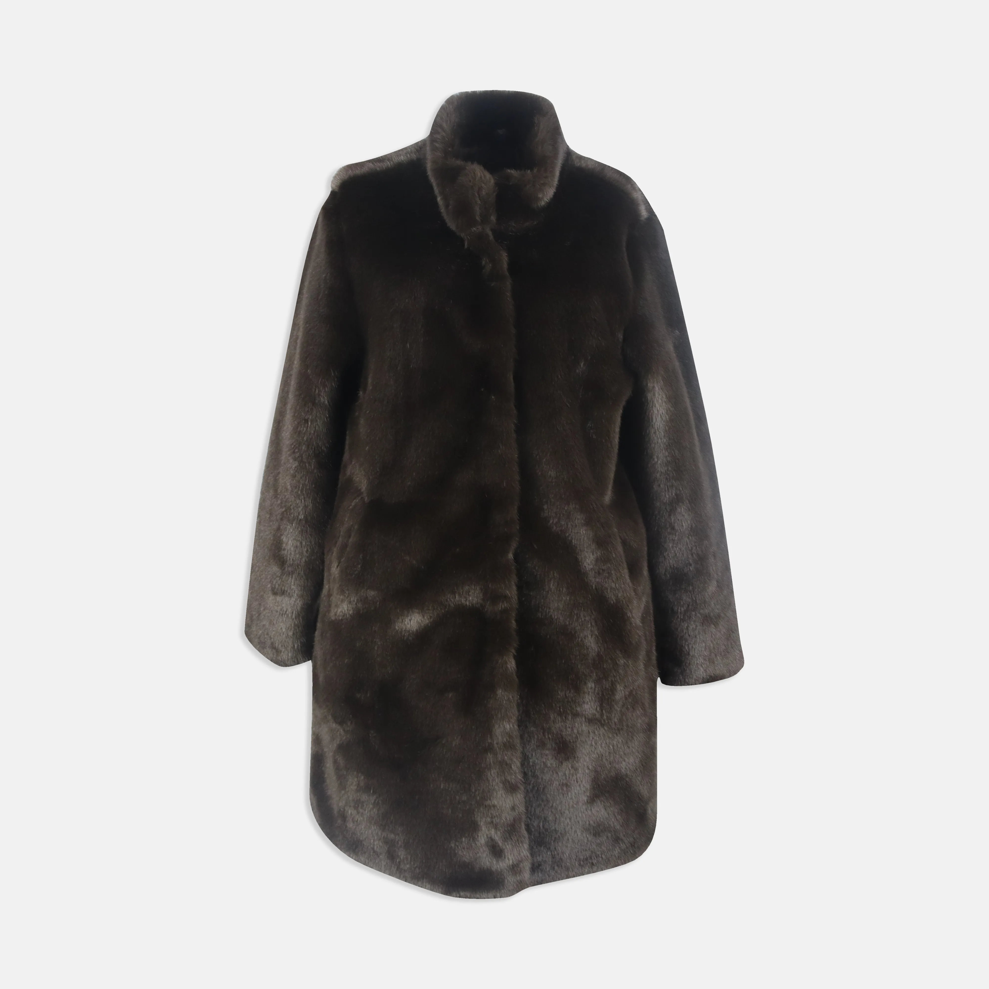 معطف فرو صناعي فاخر بياقة عالية يمنحك الدفء والأناقة في الأيام الباردة. مصنوع بالكامل من بوليستر عالي الجودة لملمس ناعم ومظهر راقٍ. اللون: بني غامق.
