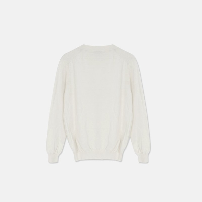 كنزة رجالية بياقة دائرية كلاسيكية، مصنوعة من مزيج ناعم ودافئ من القطن والصوف بنسبة 75% قطن و25% صوف