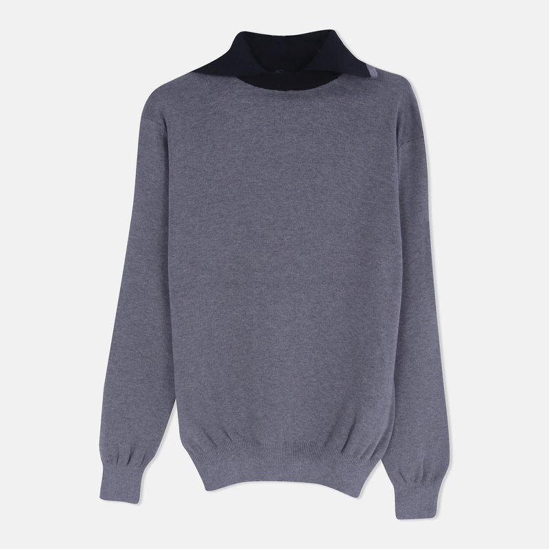 كنزة بياقة عالية وتصميم بياقة بلون متباين لإطلالة عصرية وملفتة. مصنوعة من مزيج ناعم من الأكريليك، القطن، والفيسكوز، تمنحك الدفء والراحة طوال اليوم.