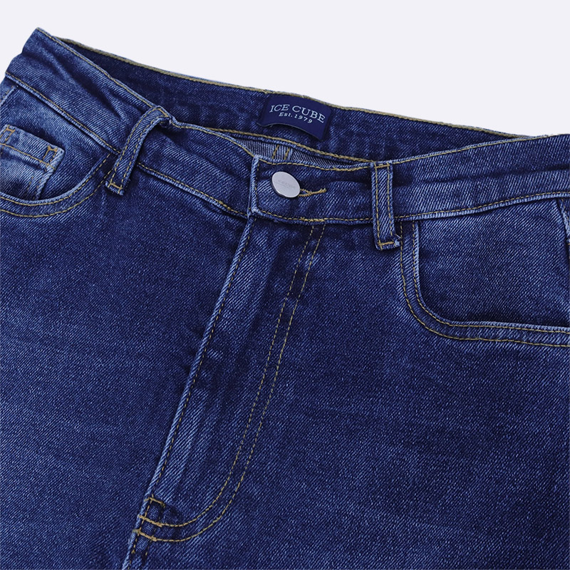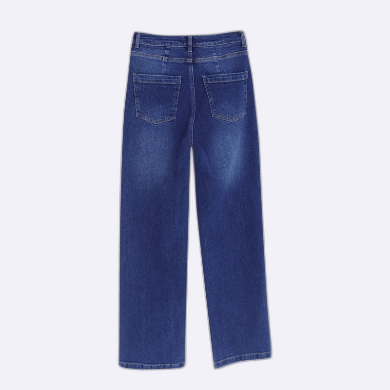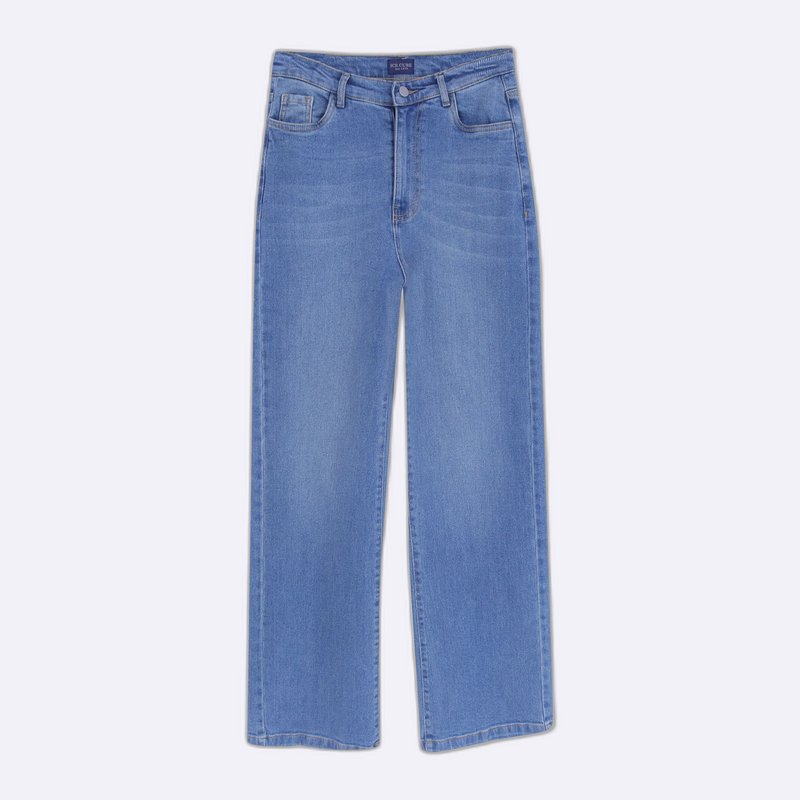 جينز نسائي عالي الخصر بقصة مستقيمة كلاسيكية. مصنوع من مزيج 99? قطن و1? إيلاستين ليوفر أقصى درجات الراحة والمرونة