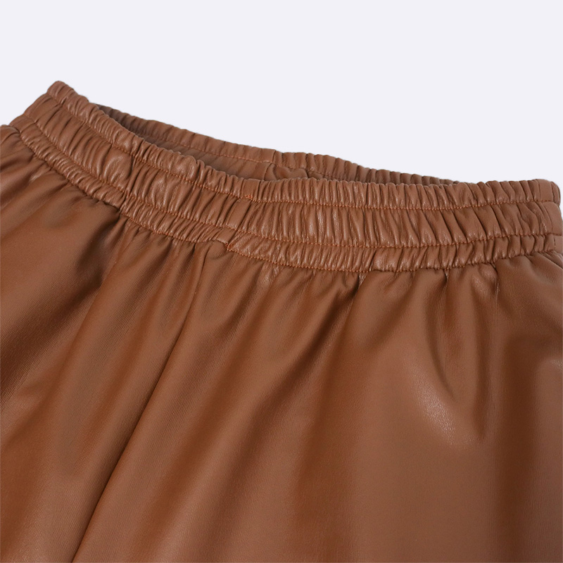ضيفي لمسة جريئة إلى إطلالتك مع بنطال جوغر نسائي بتصميم ضيق من الجلد الصناعي بلون أسود وعسلي. مصنوع من مزيج مرن من البوليستر والبولي يوريثان والإسباندكس لراحة وأناقة طوال اليوم
