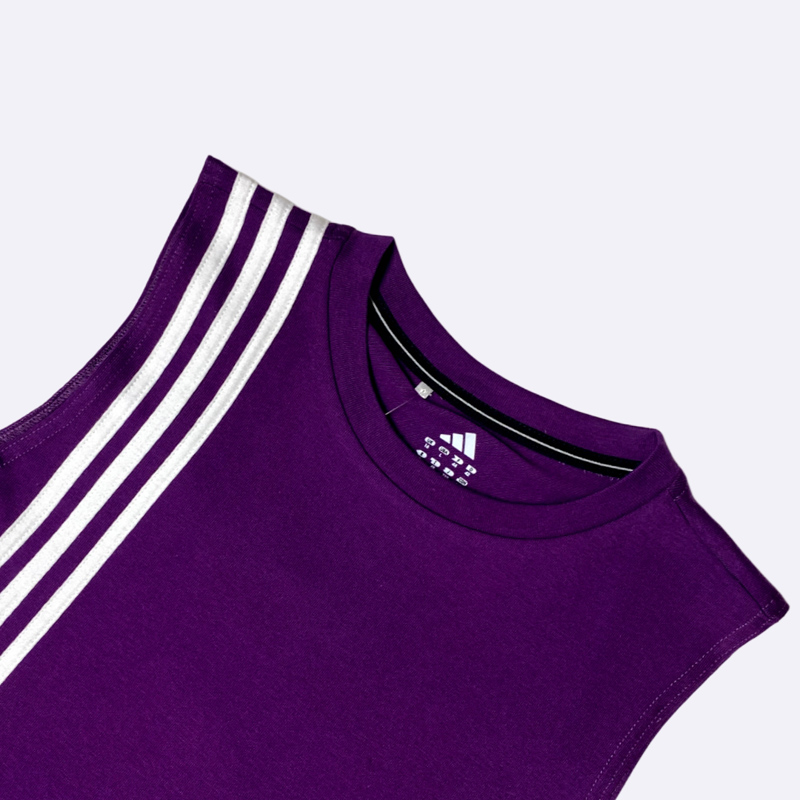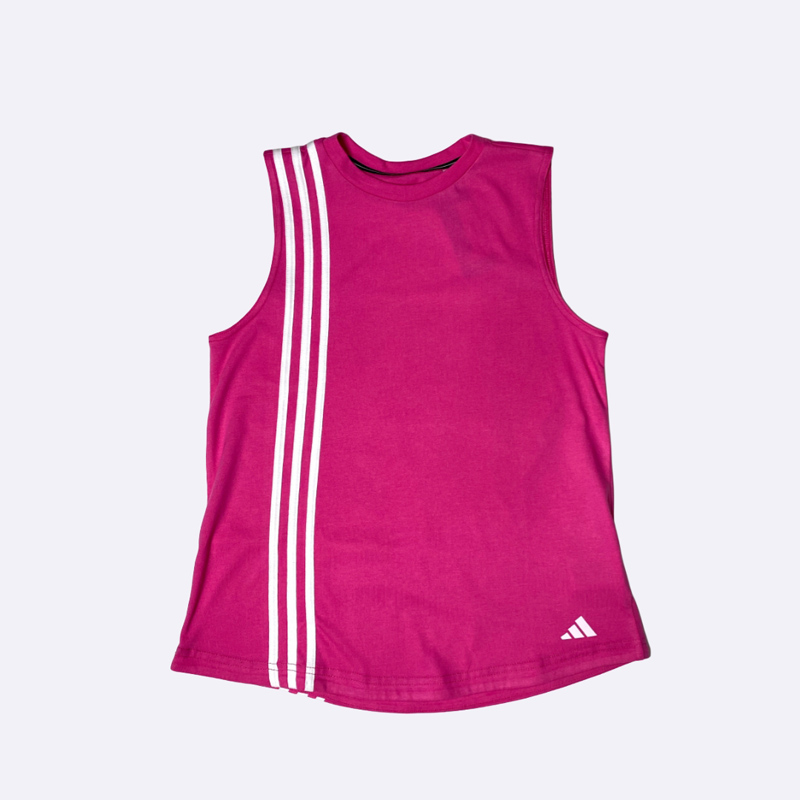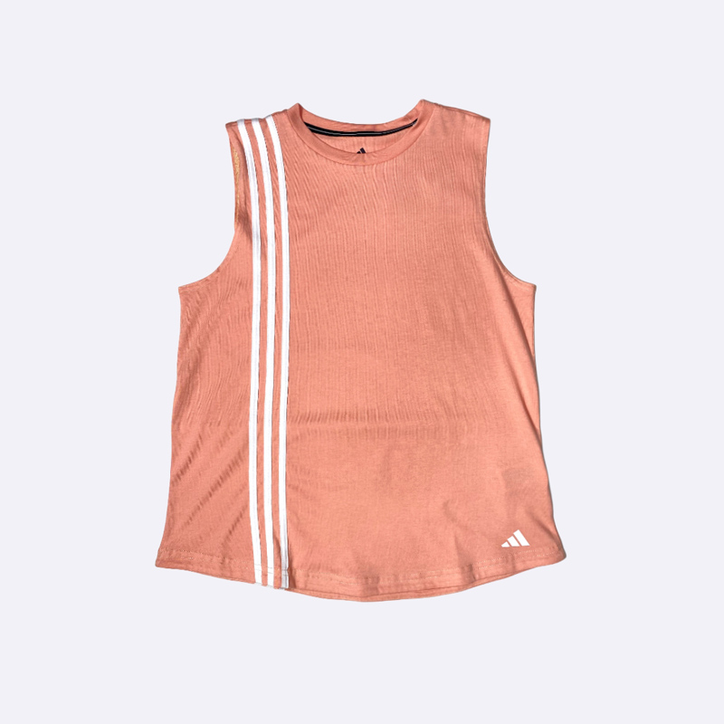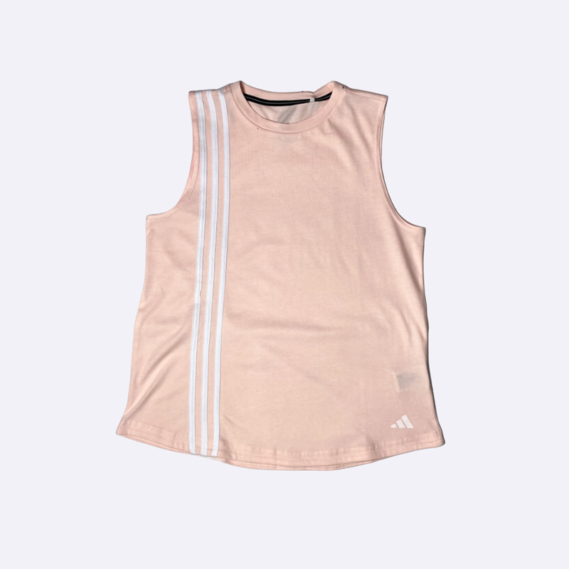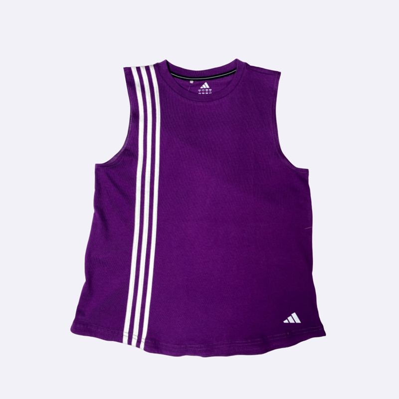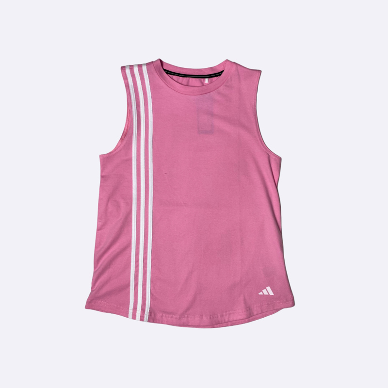 تانك توب رياضي نسائي مصنوع من 100% قطن لضمان الراحة والتهوية. يتميز بتصميم كلاسيكي، مع خطوط أديداس الثلاثة الشهيرة التي تمتد على طول الجانب الأيسر، بالإضافة إلى شعار العلامة التجارية في الأسفل.