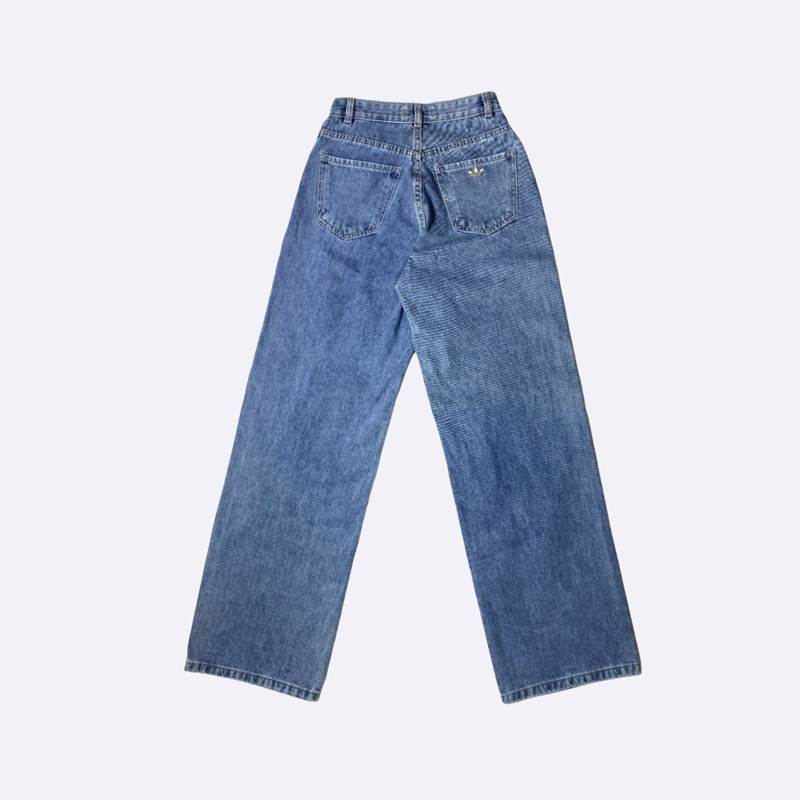 بنطلون جينز نسائي بتصميم عصري وكلاسيكي، يتميز بقصة البوت كات التي تأتي بقصة مستقيمة من الخصر إلى الركبة، وتتسع قليلاً من الركبة إلى الكاحل. هذا التصميم يمنح إطلالة مريحة وعملية، وهو مثالي للارتداء اليومي.