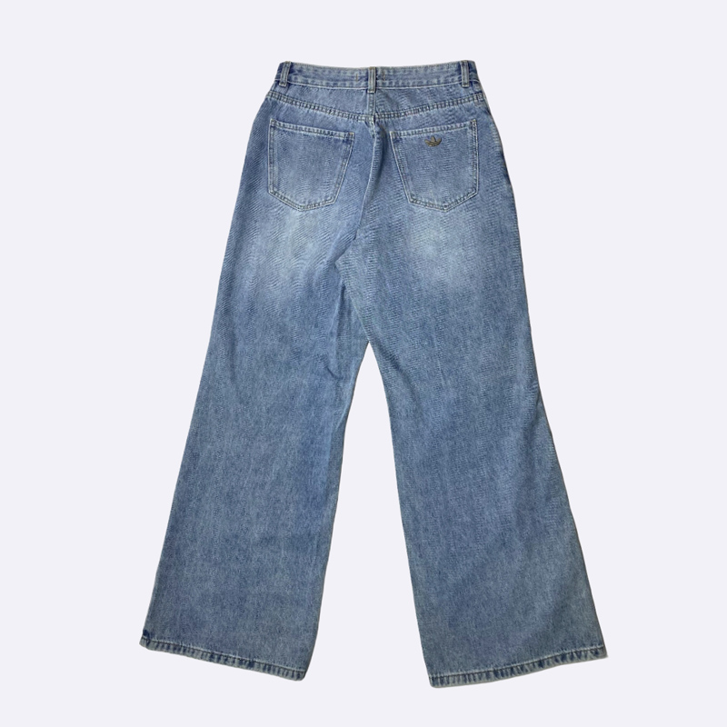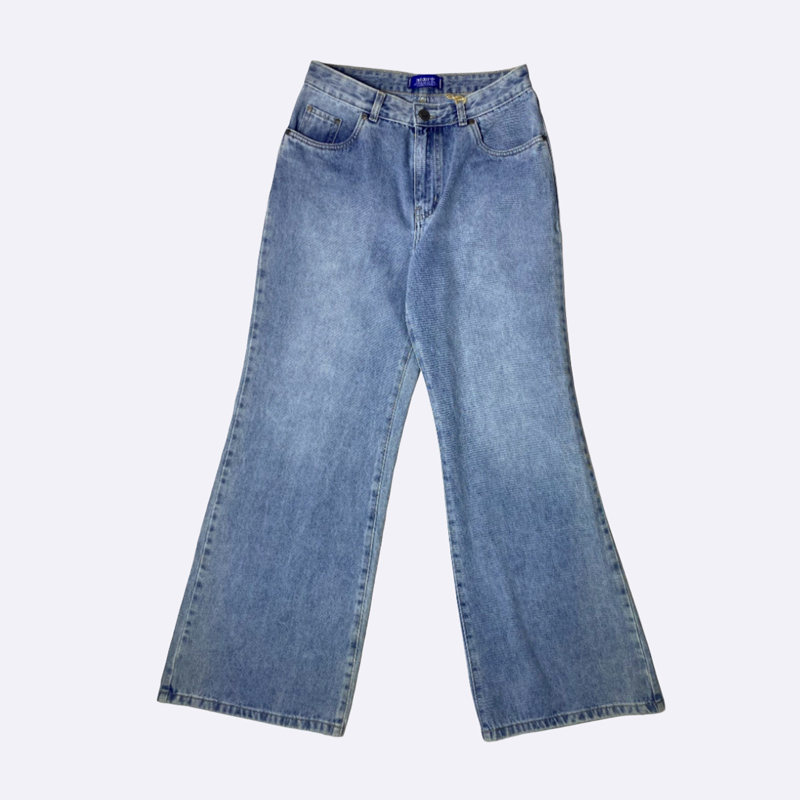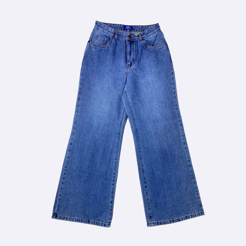 بنطلون جينز نسائي بتصميم عصري وكلاسيكي، يتميز بقصة البوت كات التي تأتي بقصة مستقيمة من الخصر إلى الركبة، وتتسع قليلاً من الركبة إلى الكاحل. هذا التصميم يمنح إطلالة مريحة وعملية، وهو مثالي للارتداء اليومي.