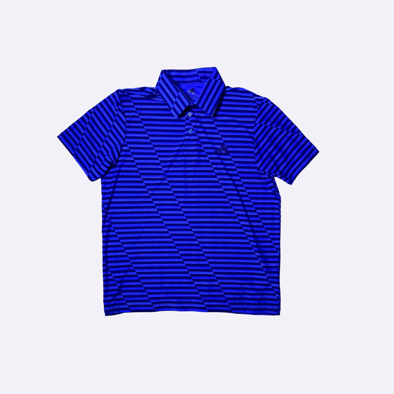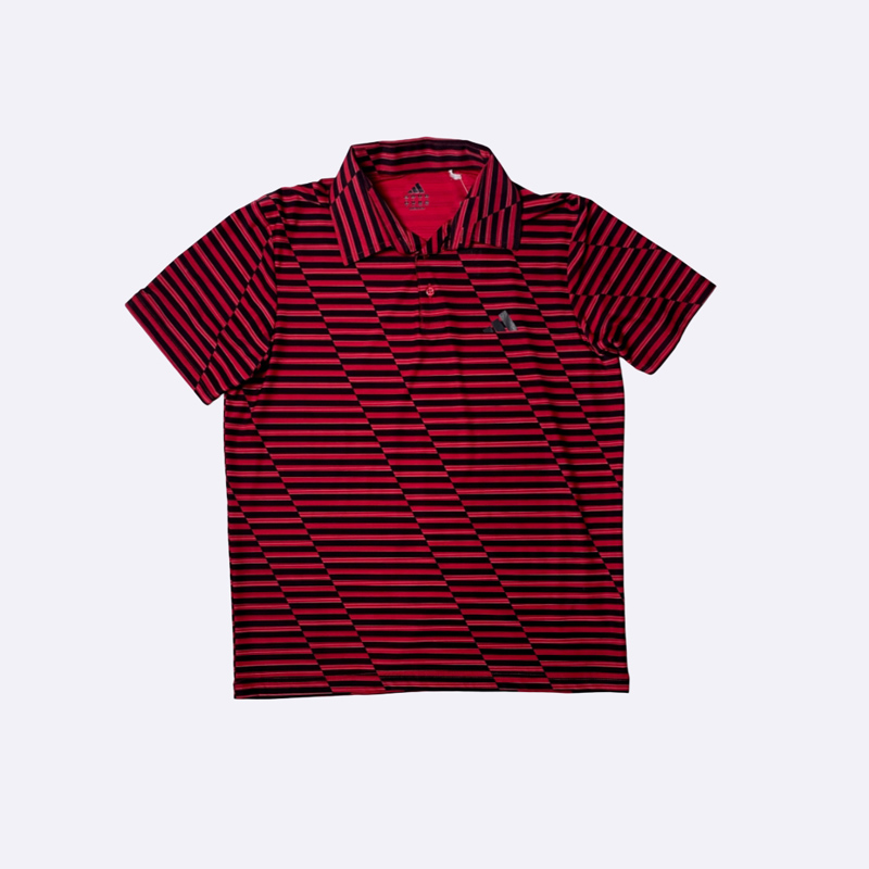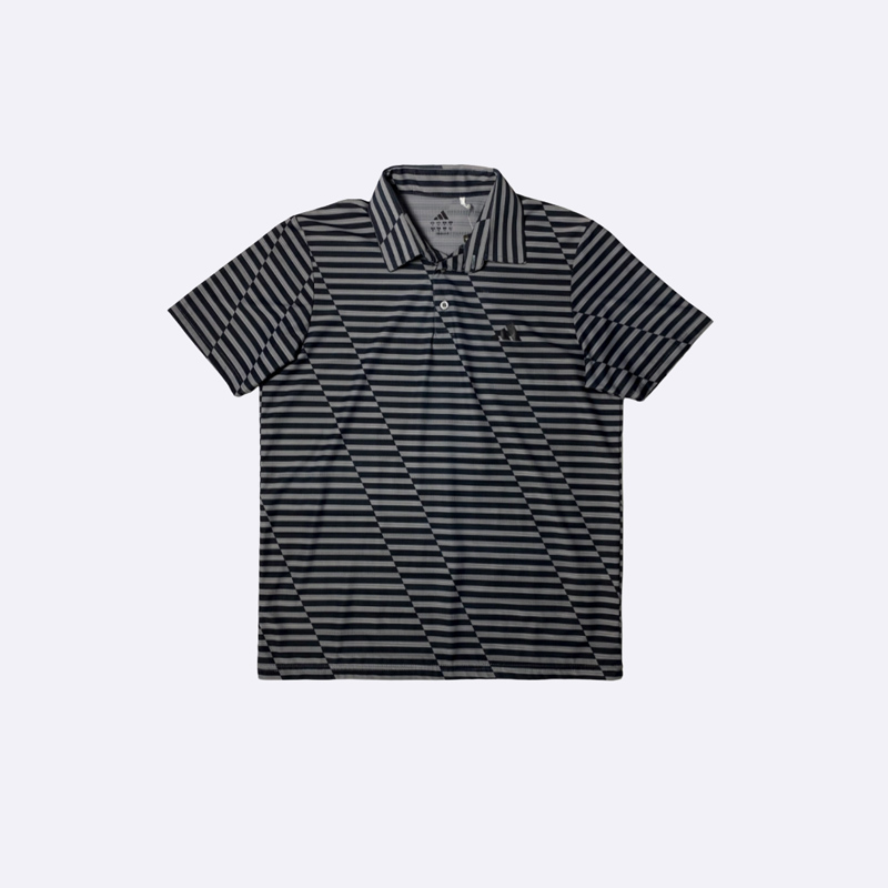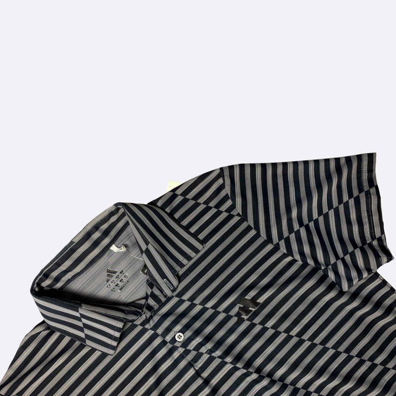 بولو شيرت رياضي رجالي بتصميم عملي ومريح. يتميز بياقة كلاسيكية وأزرار عند الرقبة، مع طبعة هندسية صغيرة تغطي القميص بالكامل. يبرز شعار أديداس الشهير على الكم الأيسر.