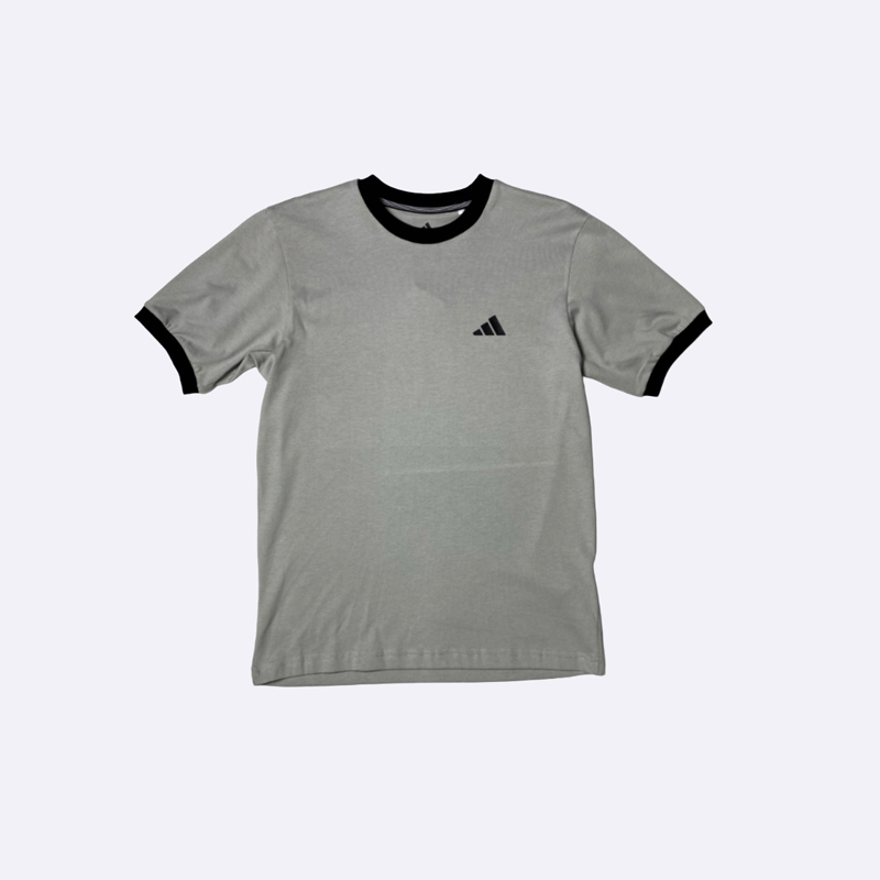 تي شيرت رجالي بتصميم كلاسيكي، يتميز بياقة وأساور أكمام باللون الرمادي، مما يضفي لمسة رياضية مميزة. الشعار الأيقوني لأديداس . هذا التي شيرت مثالي للارتداء اليومي أو لممارسة التمارين الخفيفة 100% قطن.