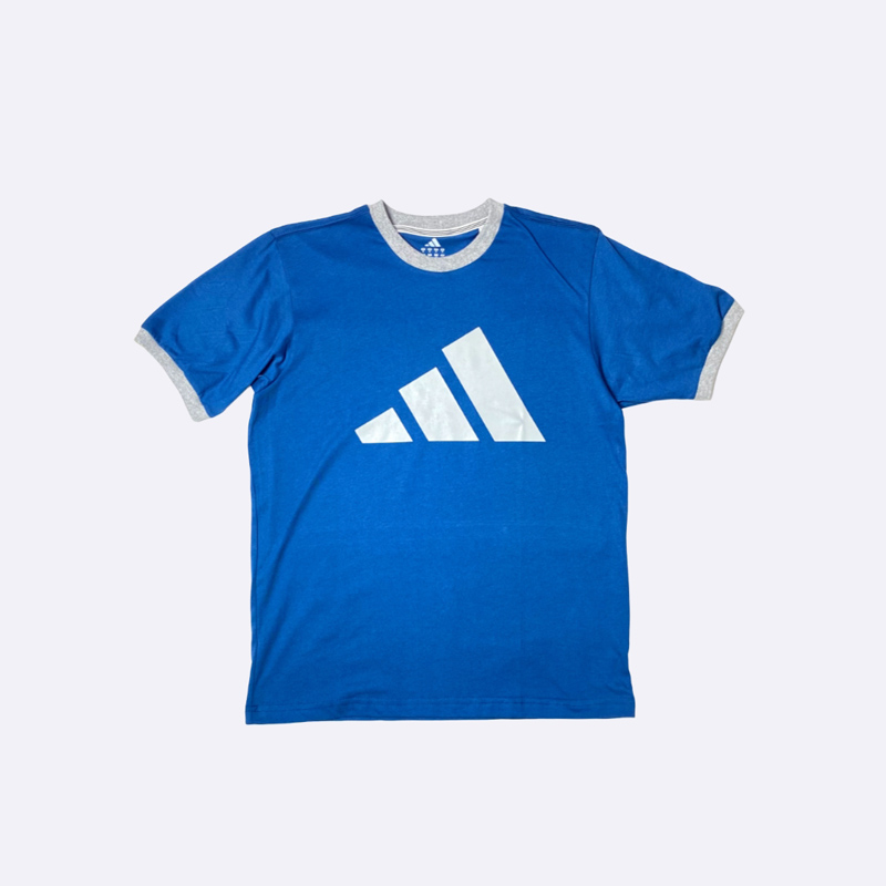 تي شيرت رجالي بتصميم كلاسيكي، يتميز بياقة وأساور أكمام باللون الرمادي، مما يضفي لمسة رياضية مميزة. الشعار الأيقوني لأديداس مطبوع على الجهة اليسرى من الصدر. هذا التي شيرت مثالي للارتداء اليومي