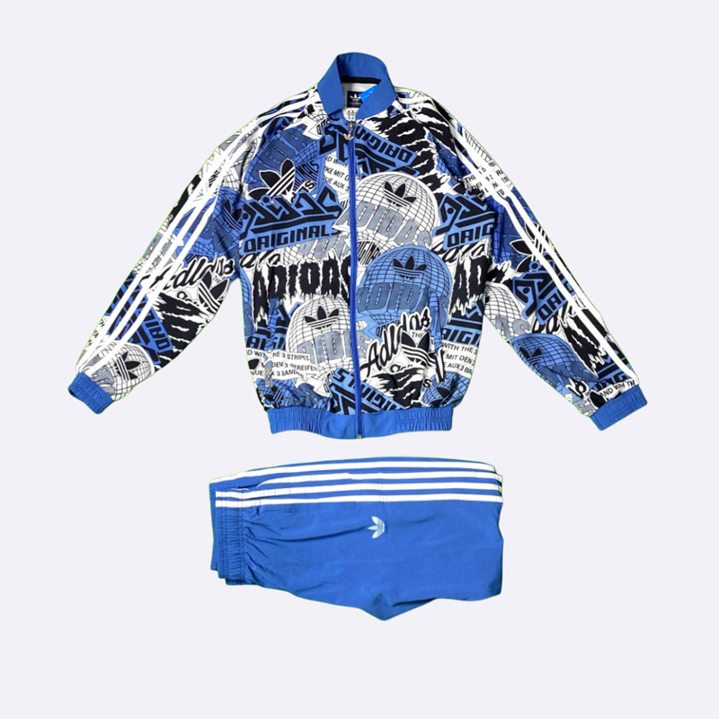 بيجامة رياضية ولادي من أديداس، مصنوعة من قماش التاكتيل الخفيف والمريح، مما يجعلها مثالية للارتداء اليومي والنشاطات الرياضية. يتكون الطقم من سترة بسحاب كامل، مزينة بخطوط أديداس الثلاثة الشهيرة على الأكمام