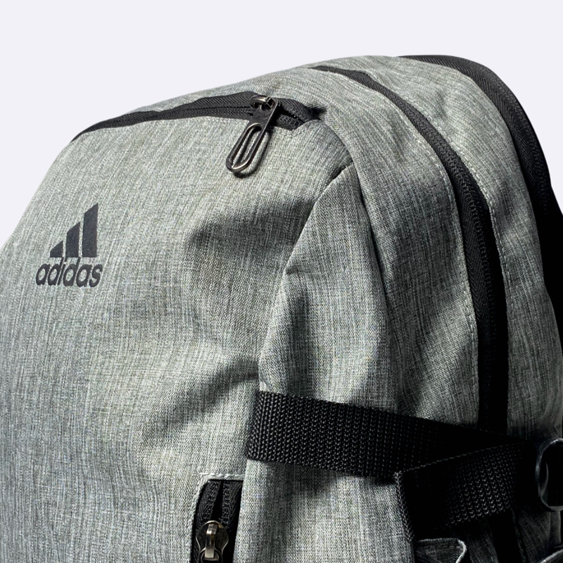 حقيبة ظهر رياضية وعصرية من أديداس، تتميز بسحاب أمامي كبير ومميز يضيف لمسة جريئة إلى التصميم. الحقيبة مصنوعة من قماش متين ومقاوم، مع شعار أديداس مطبوع على الجانب.