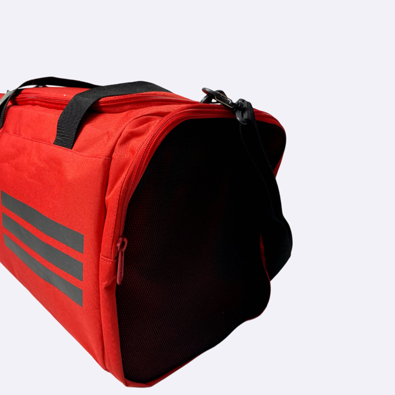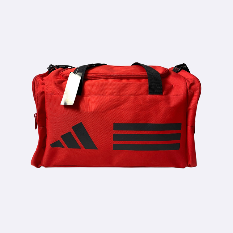 حقيبة دفل رياضية عملية من أديداس، مثالية للاستخدام اليومي أو للتمارين. تتميز بتصميمها المستطيل وجيوبها المتعددة، مع شعار أديداس الشهير والمكون من ثلاثة خطوط. ا