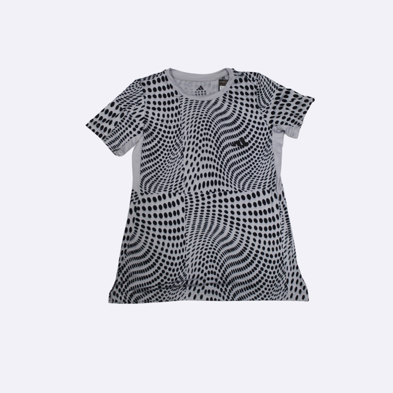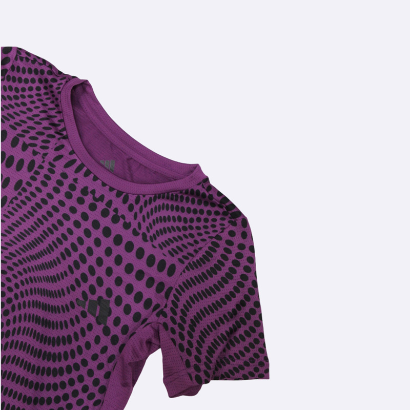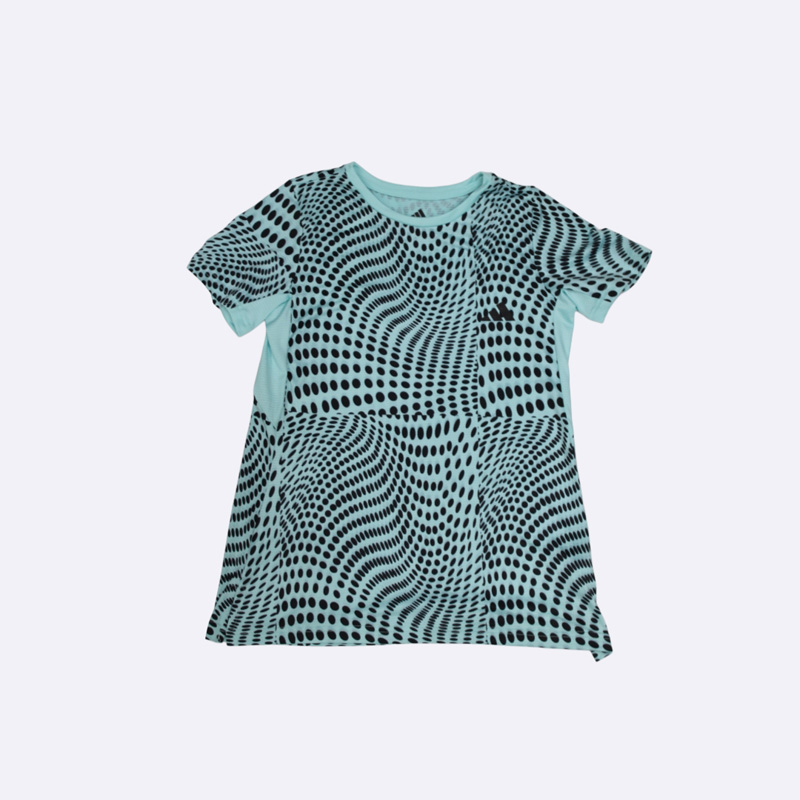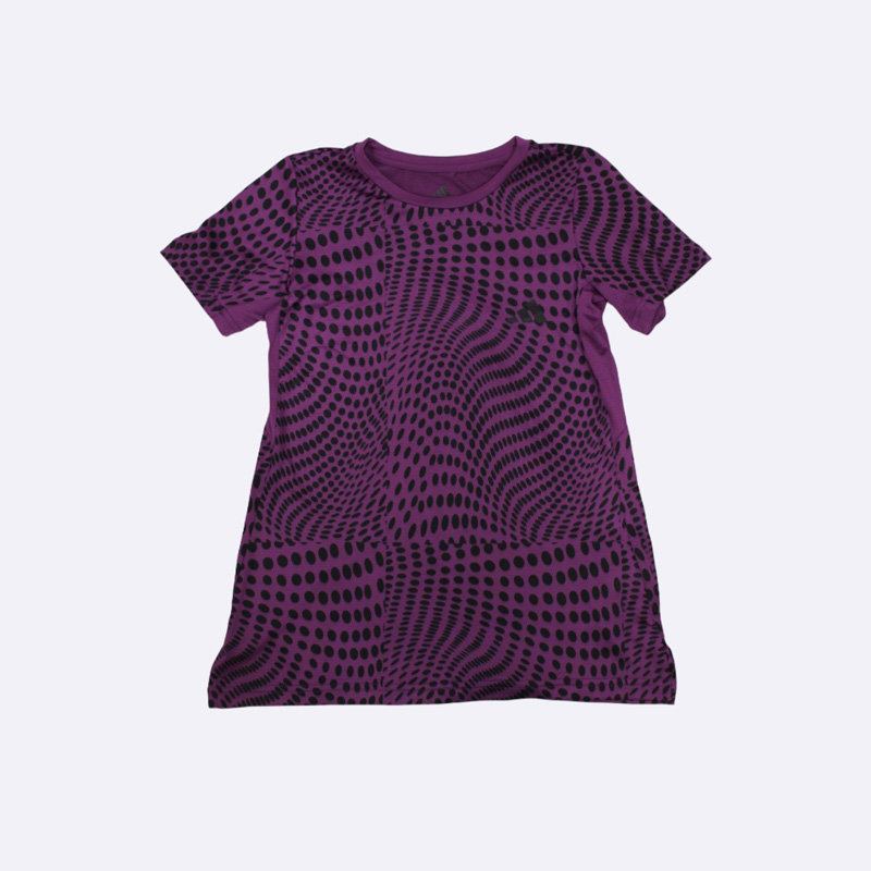 كنزة نسائي أنيق من أديداس، يتميز بطبعة مموجة من النقاط باللون الأسود على خلفية موف. هذا الفستان مريح وعصري، مثالي للإطلالات اليومية. متوفر بألوان الموف، الرمادي، والسماوي