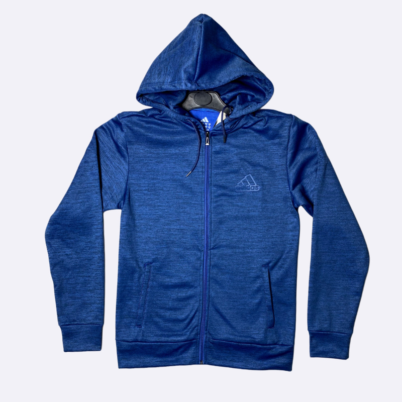 جاكيت رياضي خفيف ومريح بأكمام طويلة، مصنوع من قماش البوليستر ويتميز بسحاب أمامي كامل وجيبين جانبيين، مزود بقبعة.