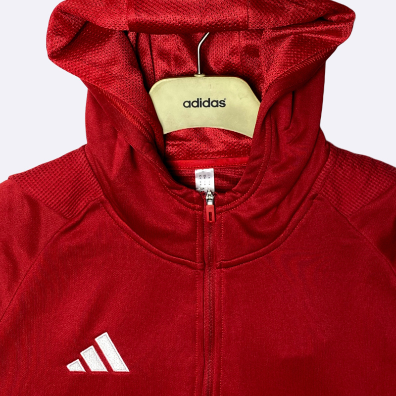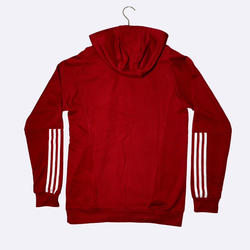 قطعة علوية رياضية بأكمام طويلة ومزودة بغطاء رأس، تتميز بسحاب قصير عند الياقة وتصميم مريح للتمارين.
