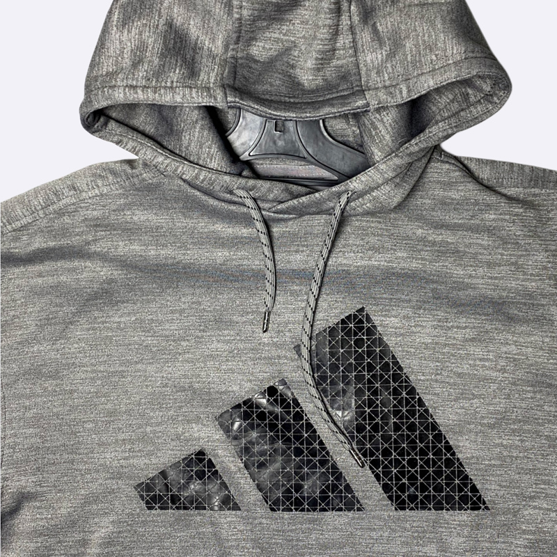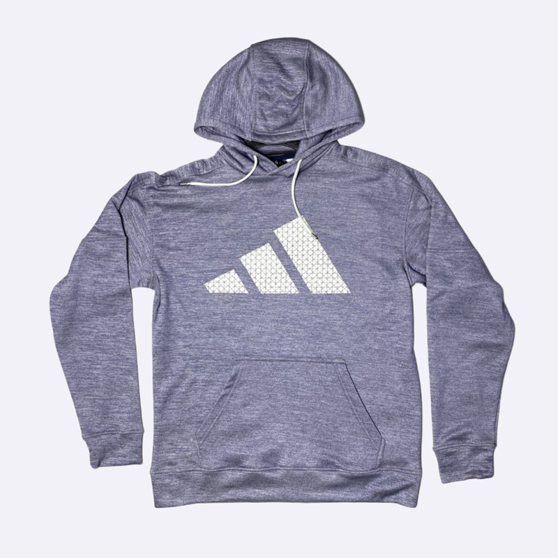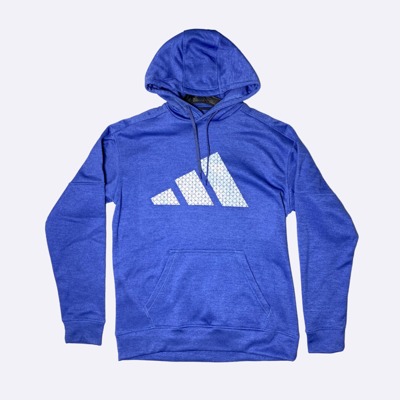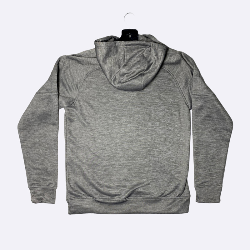 كنزة هودي بأكمام طويلة مصنوعة من قماش رياضي بتقنية امتصاص الرطوبة، تتميز بقلنسوة وجيب أمامي كبير، ومزينة بطبعة شعار كبيرة بتصميم عصري.
