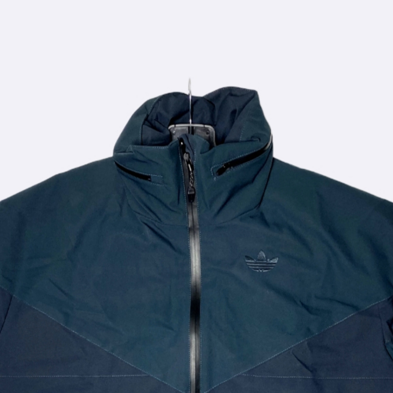 جاكيت خارجي شتوي بأكمام طويلة وتصميم مقسوم عند الصدر، يتميز بسحاب أمامي كامل و ياقة عالية و غطاء رأس، مزود بجيوب أمامية كبيرة بغطاء لحفظ الأغراض.