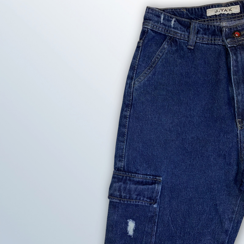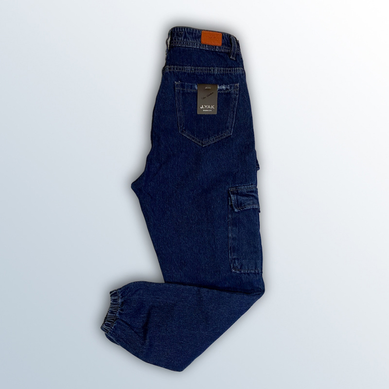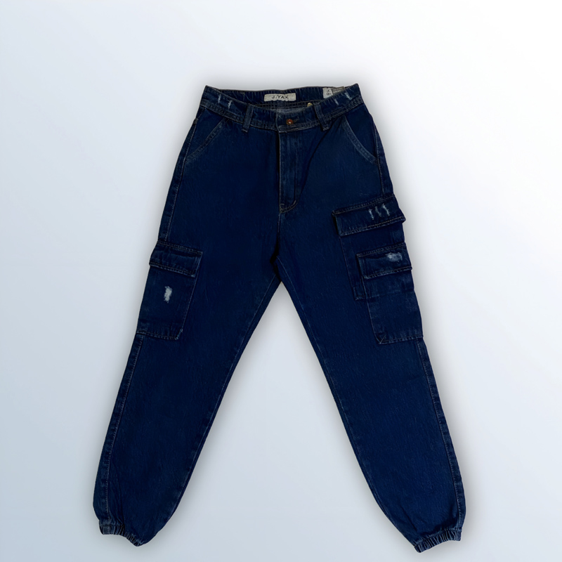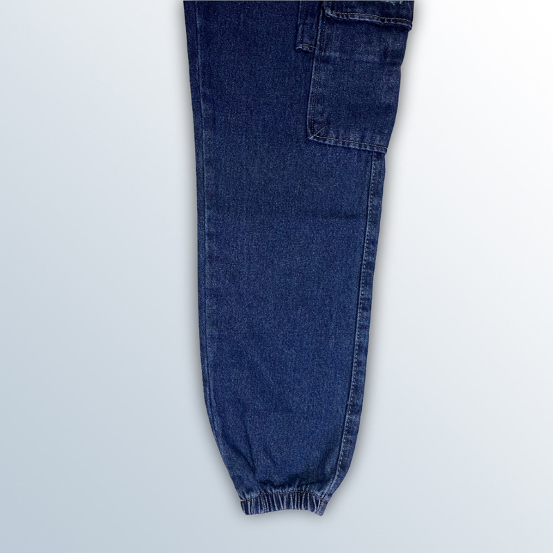 بنطلون جينز نسائي بقصة "كارغو" (Cargo)، مزود بجيوب جانبية وزم من الأسفل، مصنوع من القطن بنسبة 100%.