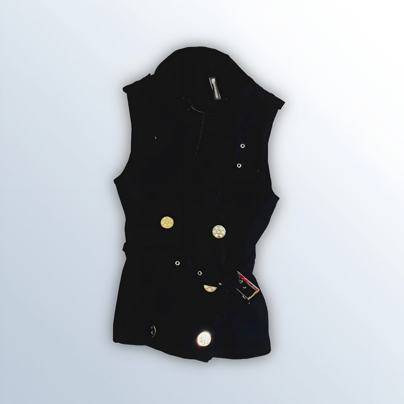 فيست نسائي بأزرار أمامية وحزام حول الخصر، مصنوع من القطن بنسبة 100%. متوفر بألوان: البيج، الأبيض، والأسود.