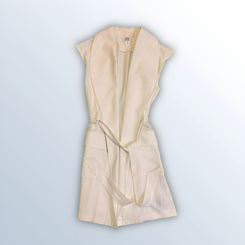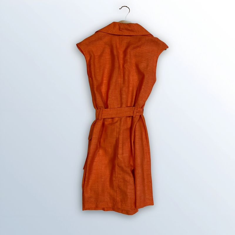 فيست نسائي بياقة عريضة وحزام حول الخصر، مصنوع من القطن بنسبة 65%. متوفر بألوان: البيج الفاتح، الكيوي، والأورانج.