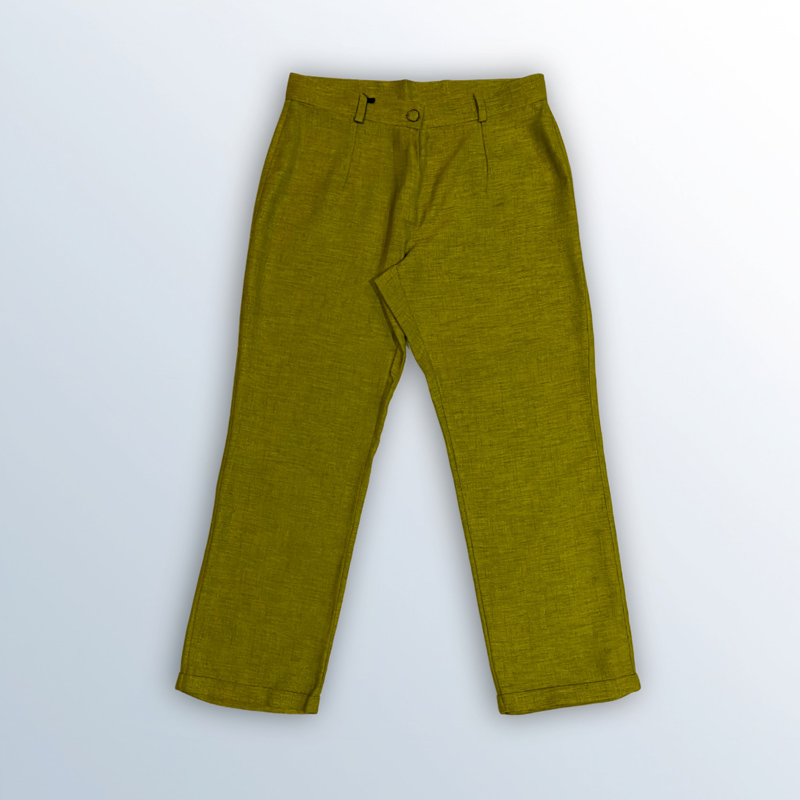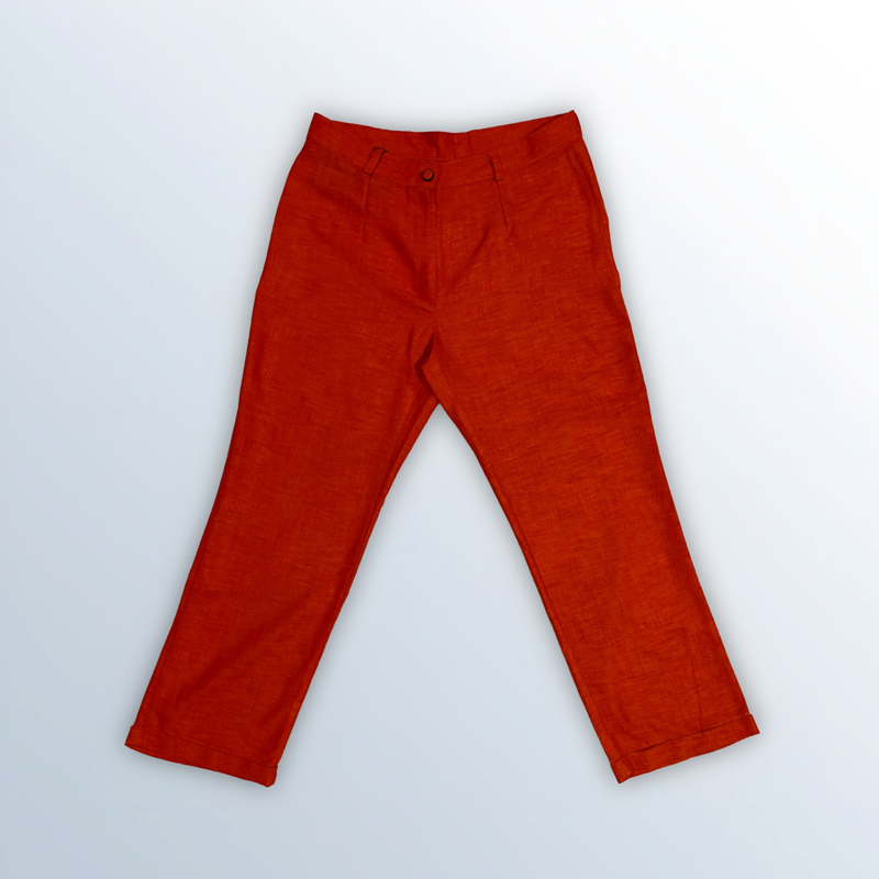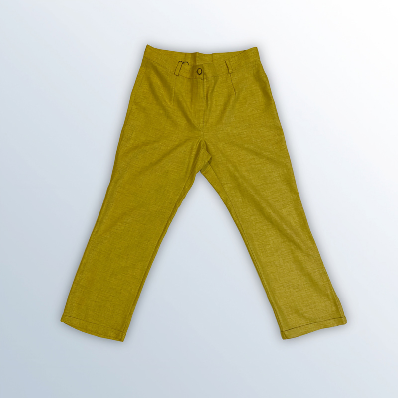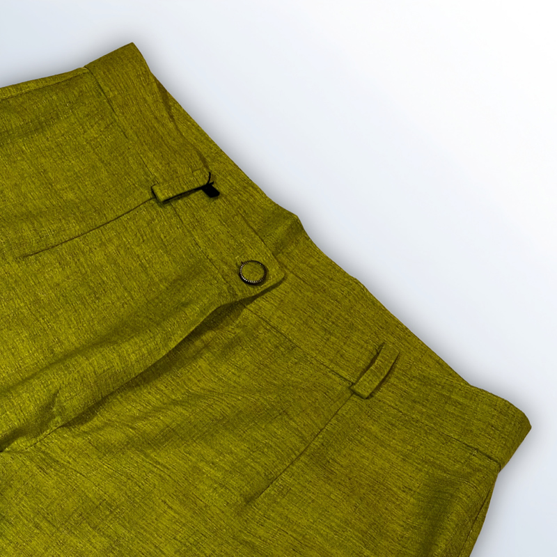 نطلون قماش نسائي بخصر مرتفع، مصنوع من القطن بنسبة 65%. متوفر بألوان: الكيوي، الأورانج