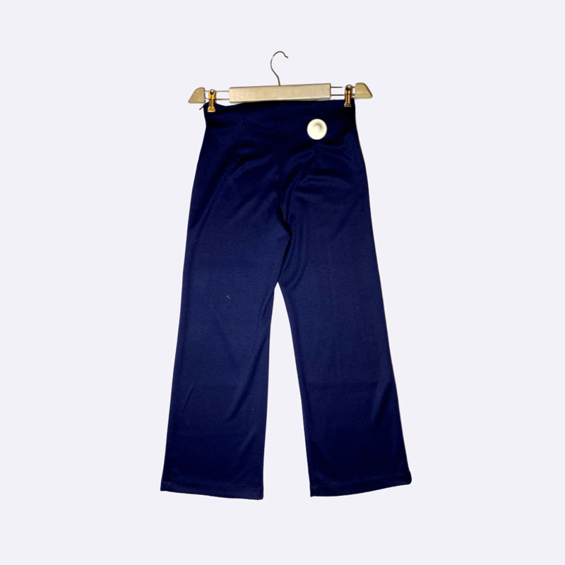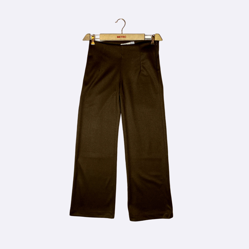 بنطلون نسائي بخصر عالٍ وقصة أرجل واسعة، مصنوع من قماش مطاطي.