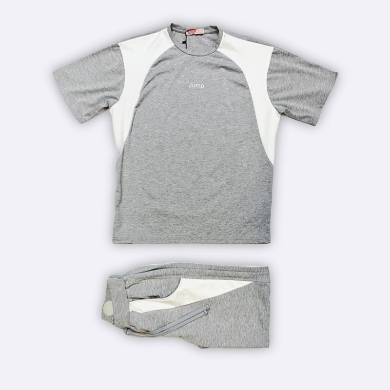 طقم رياضي عملي مكوّن من قميص بأكمام راجلان مع بنطال، مناسب للتمارين.