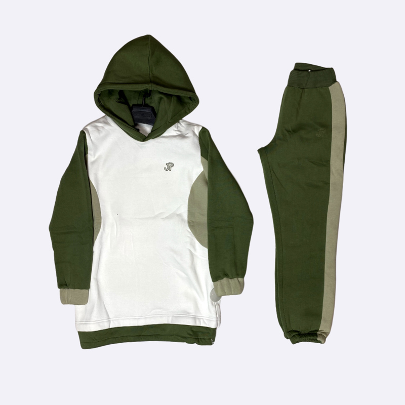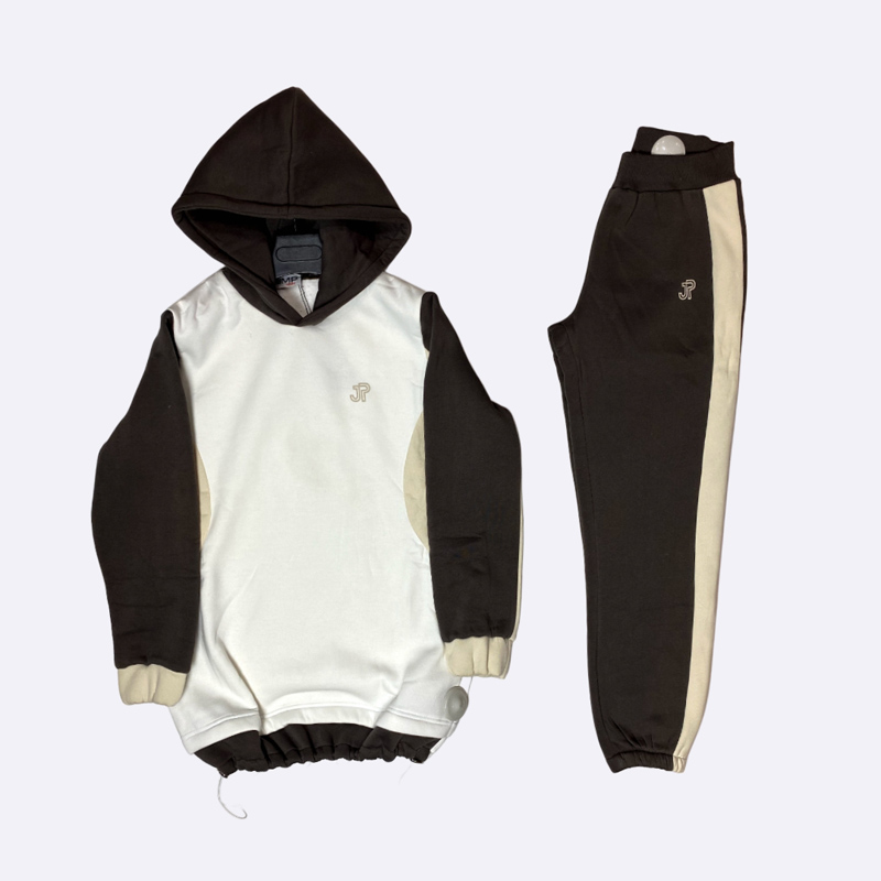 تألقي بإطلالة عصرية ومريحة مع هذا الطقم الرياضي الأنيق. يتكون الطقم من بنطلون رياضي مريح وهودي عصري بتصميم ألوان متباينة.