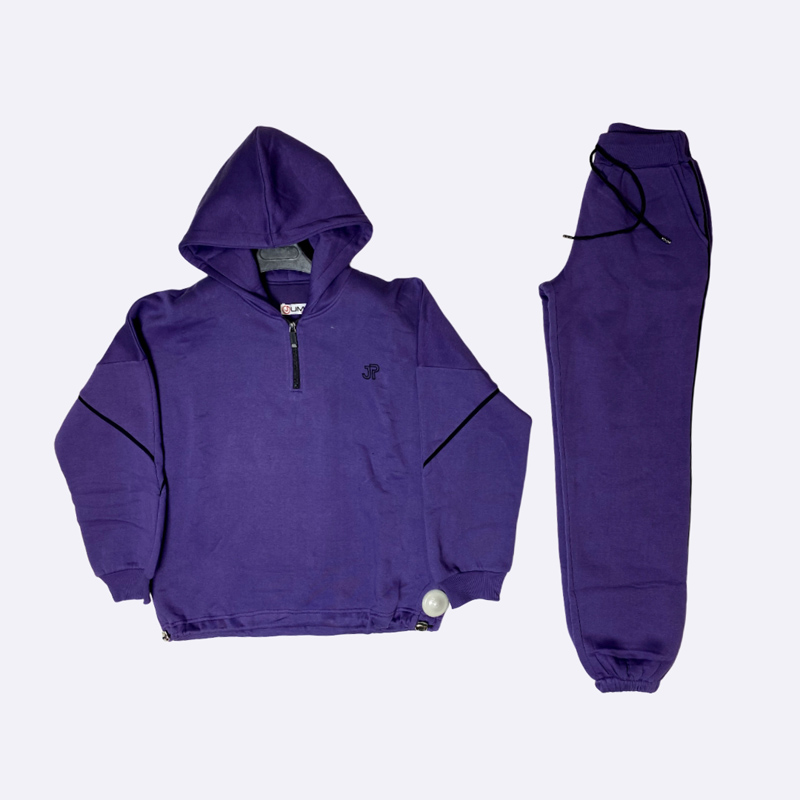 استمتعي بإطلالة عصرية ومريحة مع هذا الطقم الرياضي الأنيق. يتكون الطقم من هودي مريح وبنطلون رياضي عصري، مما يجعله مثالياً للاسترخاء أو ممارسة الرياضة.