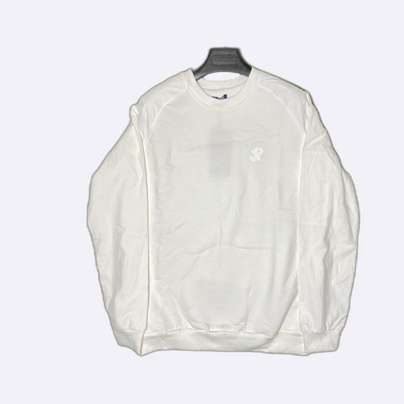 سويت شيرت رجالي عصري يجمع بين نسيج القطن المريح وأكمام من خامة متباينة، مزين بشعار JP الأنيق.
