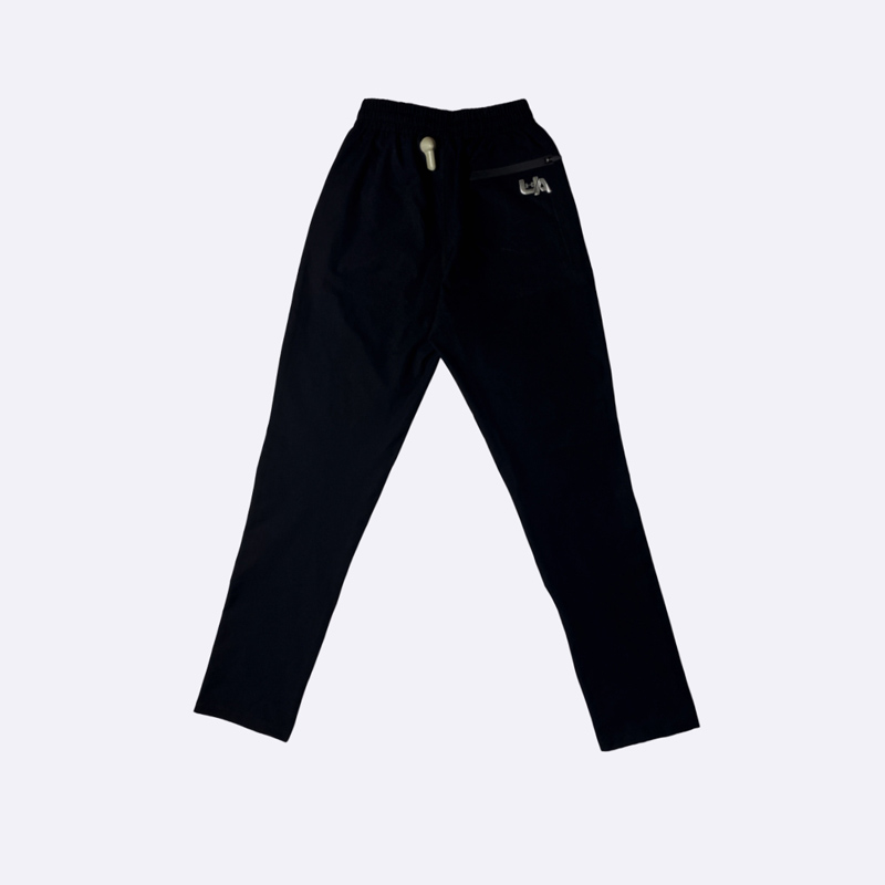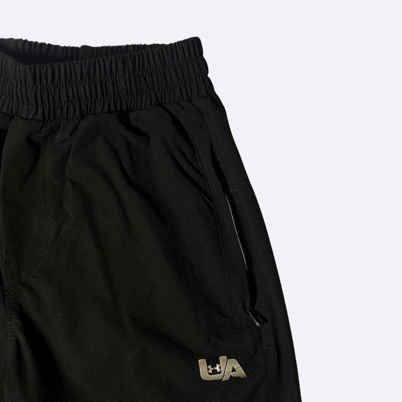 بنطال رياضي عملي ومريح باللون الأسود، يتميز بتصميم كلاسيكي فضفاض قليلاً. مصنوع من قماش الباراشوت خفيف الوزن، مما يجعله مثالياً للأنشطة اليومية أو الرياضات المختلفة.