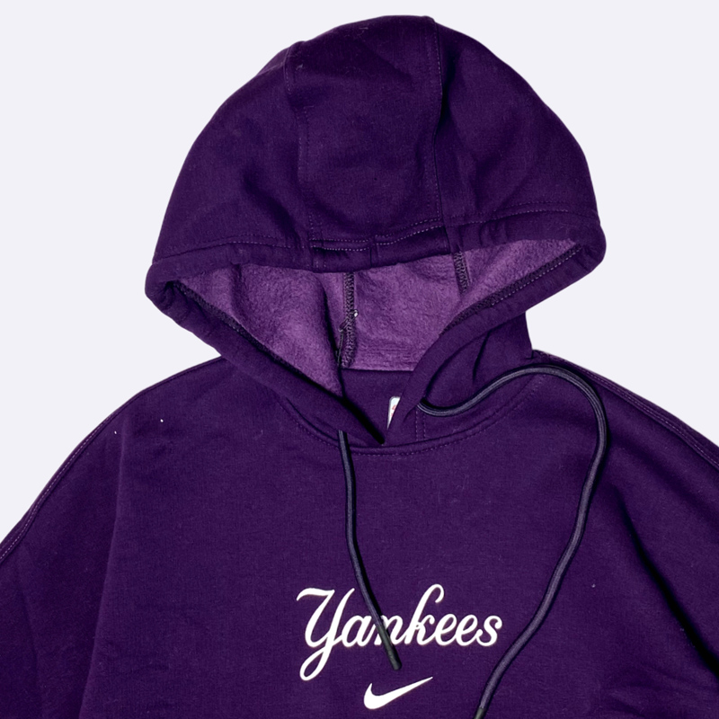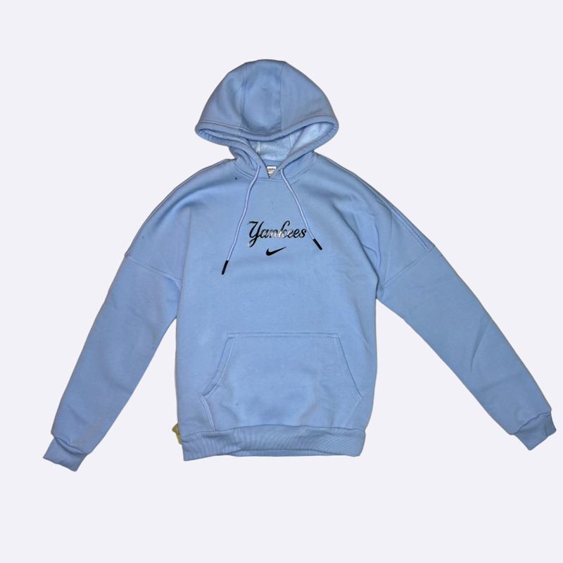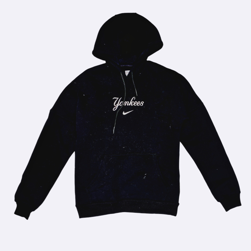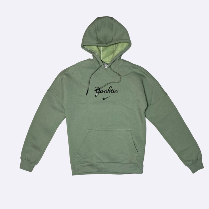 هودي رجالي كلاسيكي يتميز بغطاء رأس قابل للتعديل وجيب أمامي كبير (كانغارو). يحمل طبعة "Yankees" مع شعار علامة رياضية أسفلها. مصنوع من نسيج دافئ ومناسب للارتداء اليومي المريح في الطقس البارد.