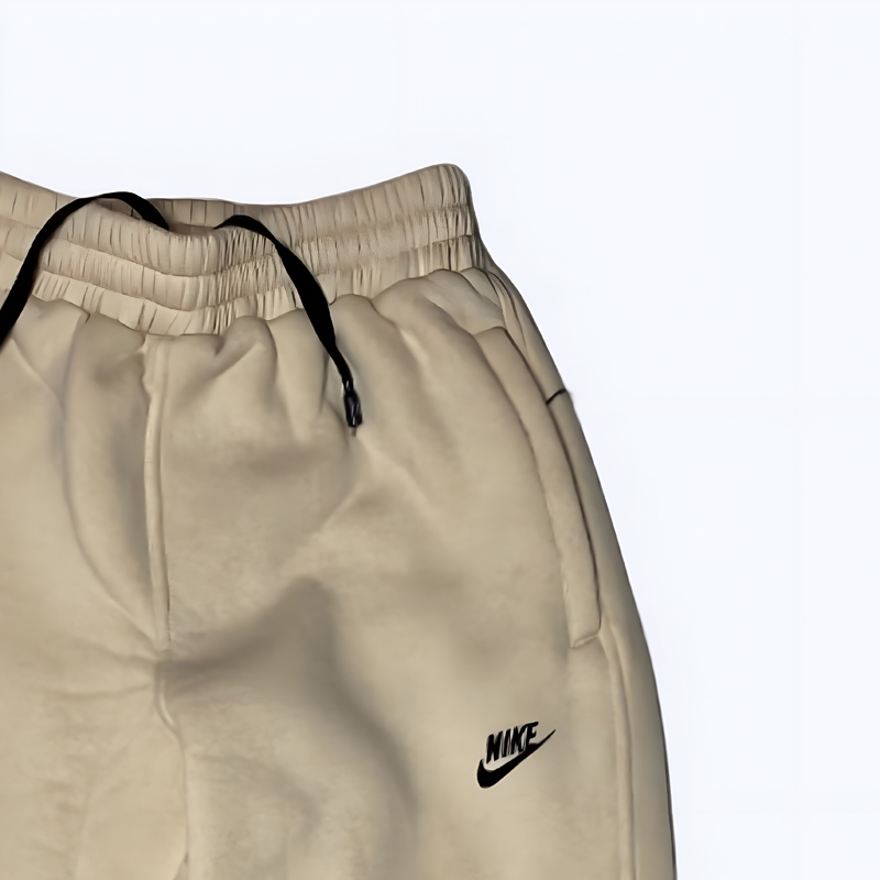 بنطلون رياضي رجالي بتصميم جوغر، مصنوع من قماش صوفي دافئ يوفر الراحة. يتميز بخصر مطاطي قابل للتعديل برباط، ويحمل شعار NIKE الصغير. مثالي للراحة في المنزل أو الارتداء اليومي غير الرسمي.