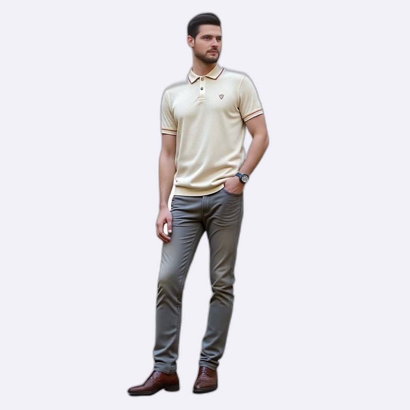 بولو تي شيرت رجالي بتصميم كلاسيكي وعصري، يتميز بياقة وأزرار عند الرقبة، وأكمام قصيرة. هذا التي شيرت مصنوع من قماش خفيف ومريح، مما يجعله مثالياً للارتداء اليومي.