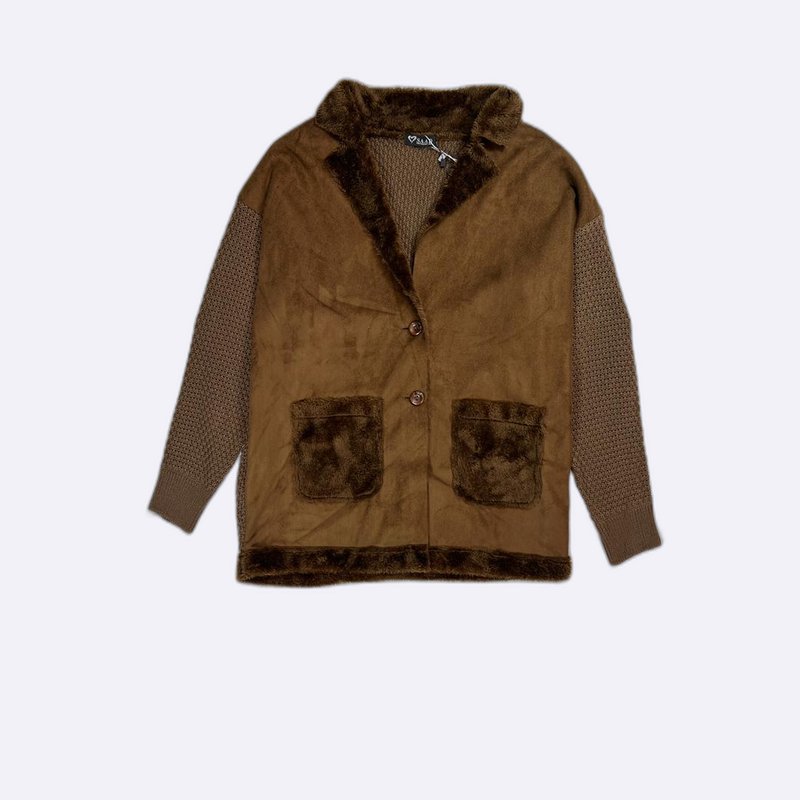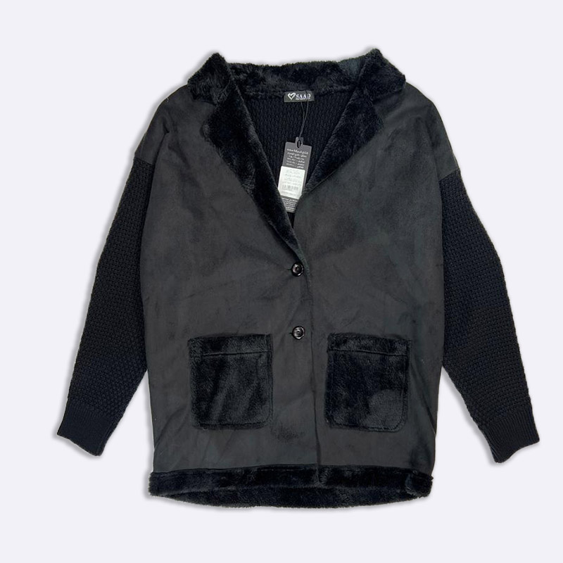 أضيفي لمسة من الأناقة إلى خزانة ملابسك مع هذا البليزر الأنيق. يتميز بأكمام محبوكة مريحة وحواف من الفرو الصناعي الفاخر، مما يجعله مثالياً لإطلالة عصرية دافئة.