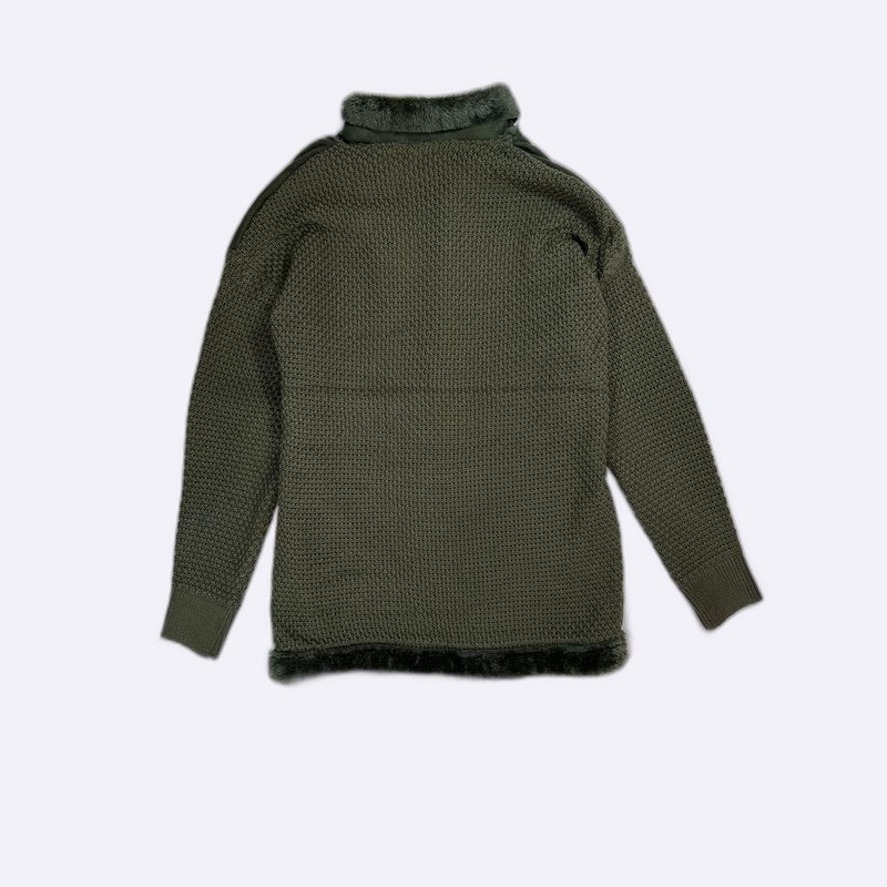 Faux Fur Trim Knit Sleeve Blazer
