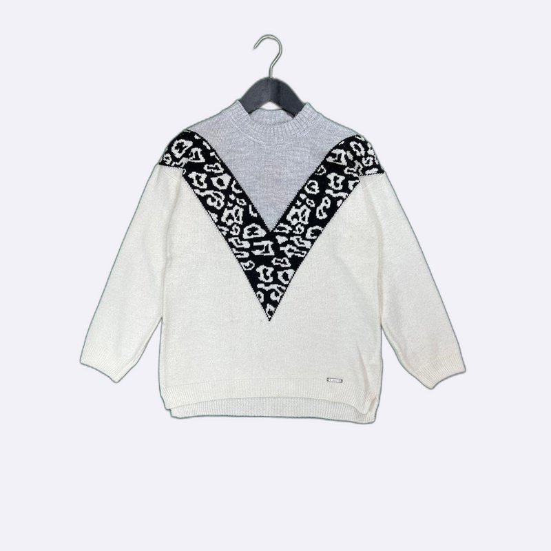 تألقي بإطلالة عصرية مع هذه الكنزة المحبوكة الأنيقة. تصميم فريد بنقشة جلد النمر يضفي لمسة جريئة ومميزة على مظهرك.