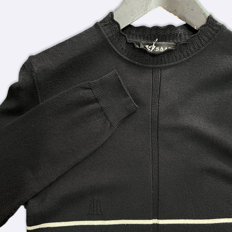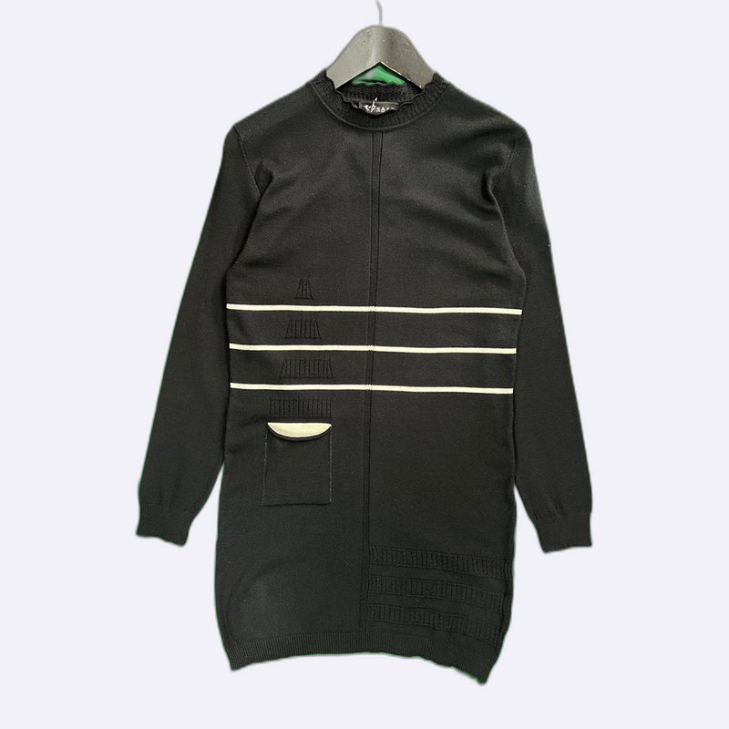 تألقي بفستان أسود قصير من نسيج التريكو المريح والأنيق. تصميم عصري بأكمام طويلة يجعله مثالياً لإطلالة كاجوال مميزة.