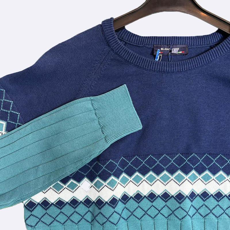 تألق بأناقة مع هذه الكنزة المحبوكة بتصميم عصري يجمع بين الألوان المتباينة ونقشة الماس الجذابة. مثالية لإطلالة كاجوال مريحة وأنيقة في آن واحد.