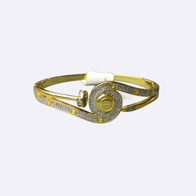 سوار بانجل بتصميم مبتكر على شكل مسمار حلزوني مزين بأحجار على طول التصميم الدائري والجوانب.