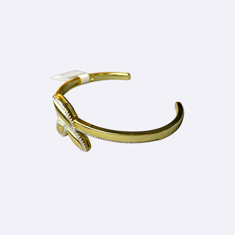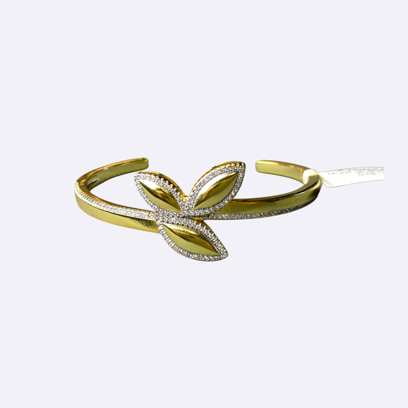 سوار بانجل مفتوح بتصميم أنيق على شكل ثلاث أوراق متداخلة، الحواف مرصعة بالأحجار.