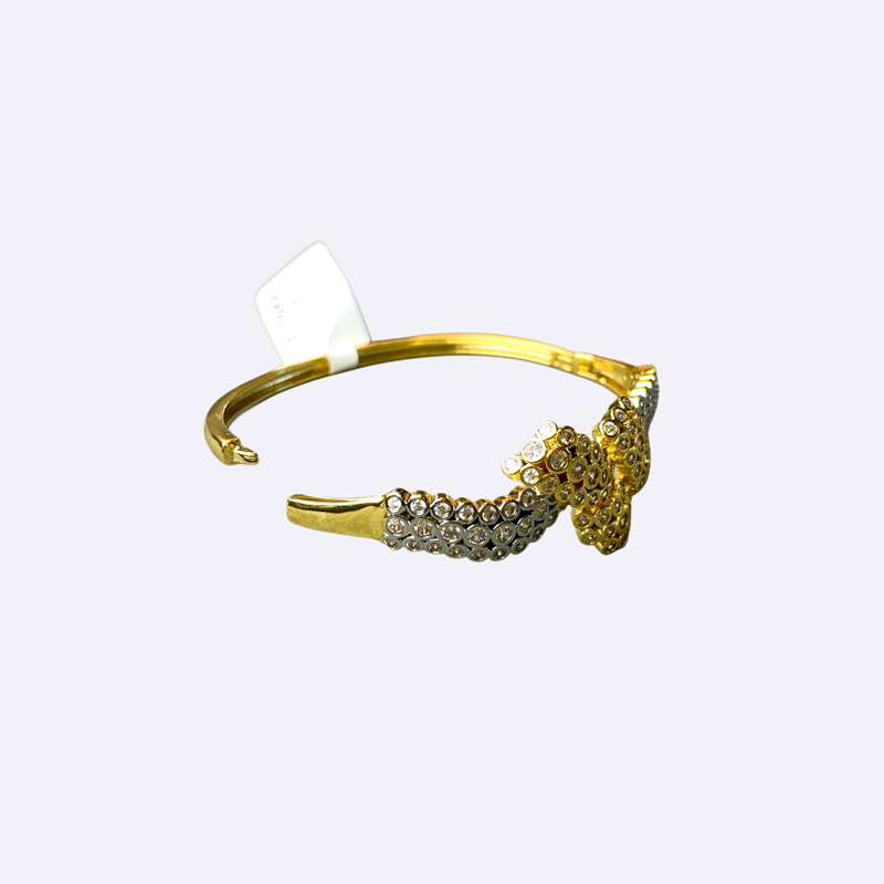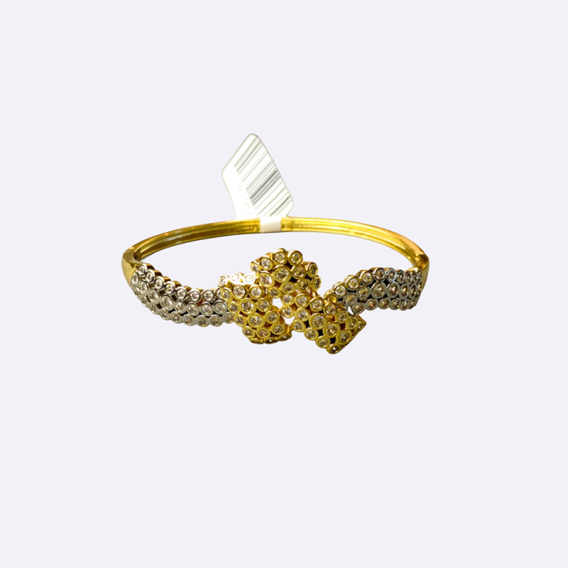 سوار بانجل رفيع يتميز بزهرة مركزية مرصعة بالكامل وأحجار على جانبي السوار.
