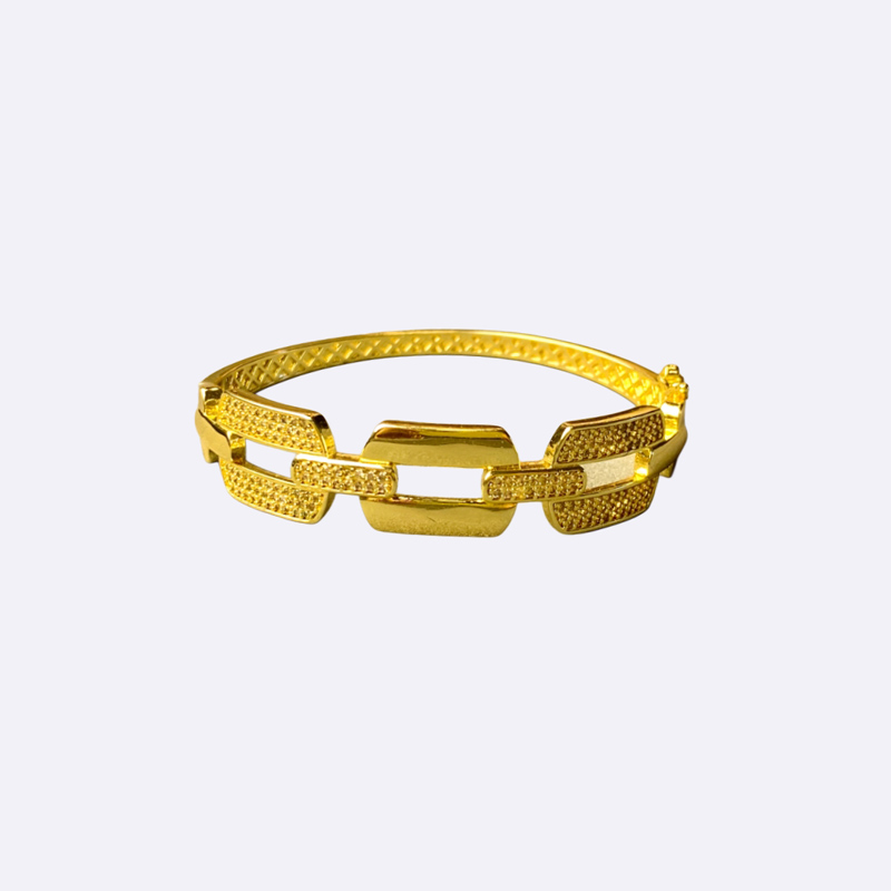 سوار بانجل صلب بتصميم حلقات مشبك ورقي مستطيلة كبيرة، بعضها مصمت والآخر مرصع.