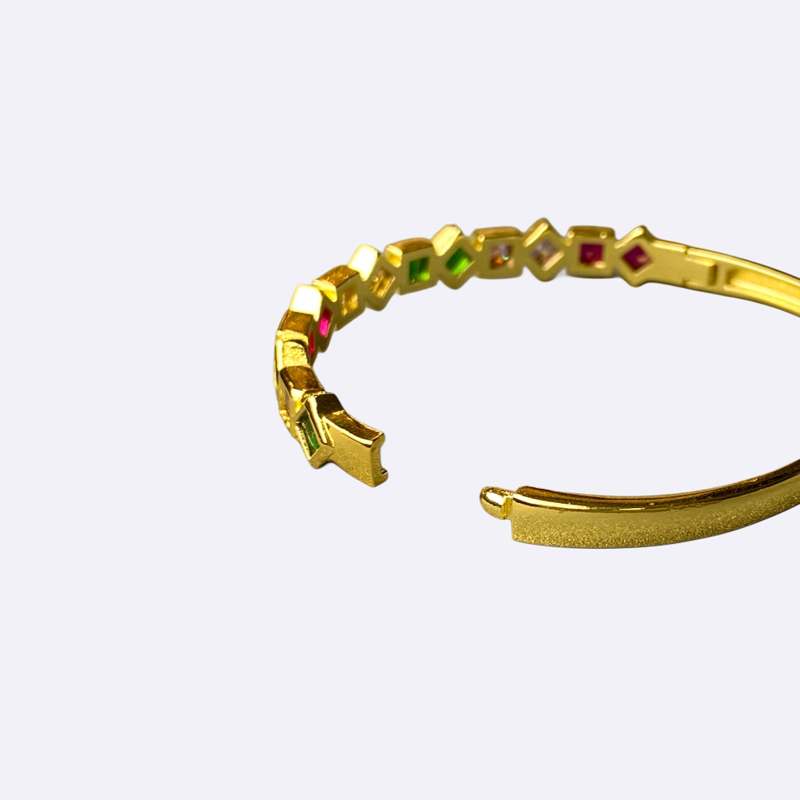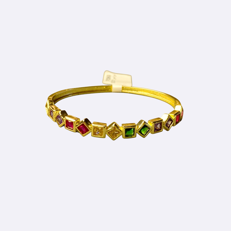 سوار بانجل عريض بتصميم مطفي مزين بزخارف متكررة على شكل زهرة البرسيم المرصعة.