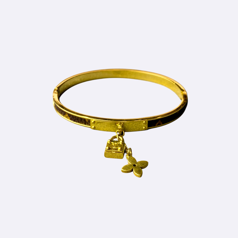 سوار بانجل رفيع ومفتوح، يتميز بقضيب مستقيم مركزي مرصع بالكامل بأحجار الباغيت الصغيرة.