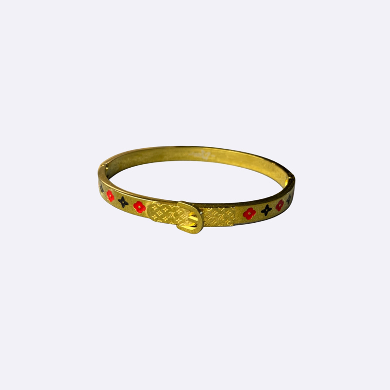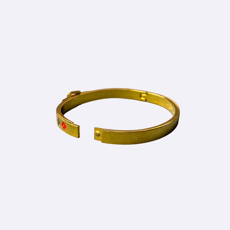 سوار بانجل صلب مزين بخط مركزي مرصع بالأحجار الكريمة وتحيط به نقوش دائرية صغيرة.