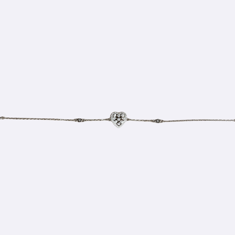 سوار بسلسلة رفيعة يتميز بزخرفة قلب مركزية مرصعة بالكامل بأحجار صغيرة.فضة عيار 925